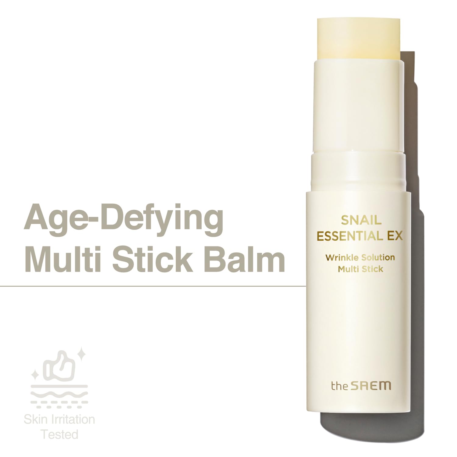 THESAEM Snail Essential EX Wrinkle Solution Multi-Purpose Balm Stick – Anti Aging & Moisturizing – Face & Eye Treatment – With Snail Collagen & Honey for Moist Glow, 0.4oz.