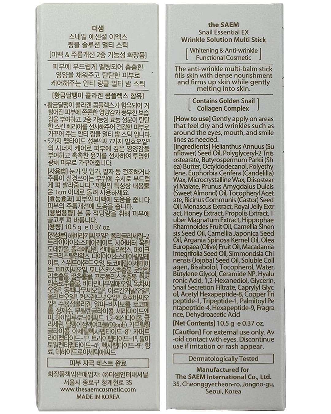 - HIGH-MOISTURE MULTI-STICK BALM: the SAEM brings you an elegant touchless way to enhance your beauty and look younger. Our high-moisture multi-stick provides a nourishing effect and feel that fills the skin from the inside to minimize wrinkles, moisturize, and improve complexion without weighing down the skin.