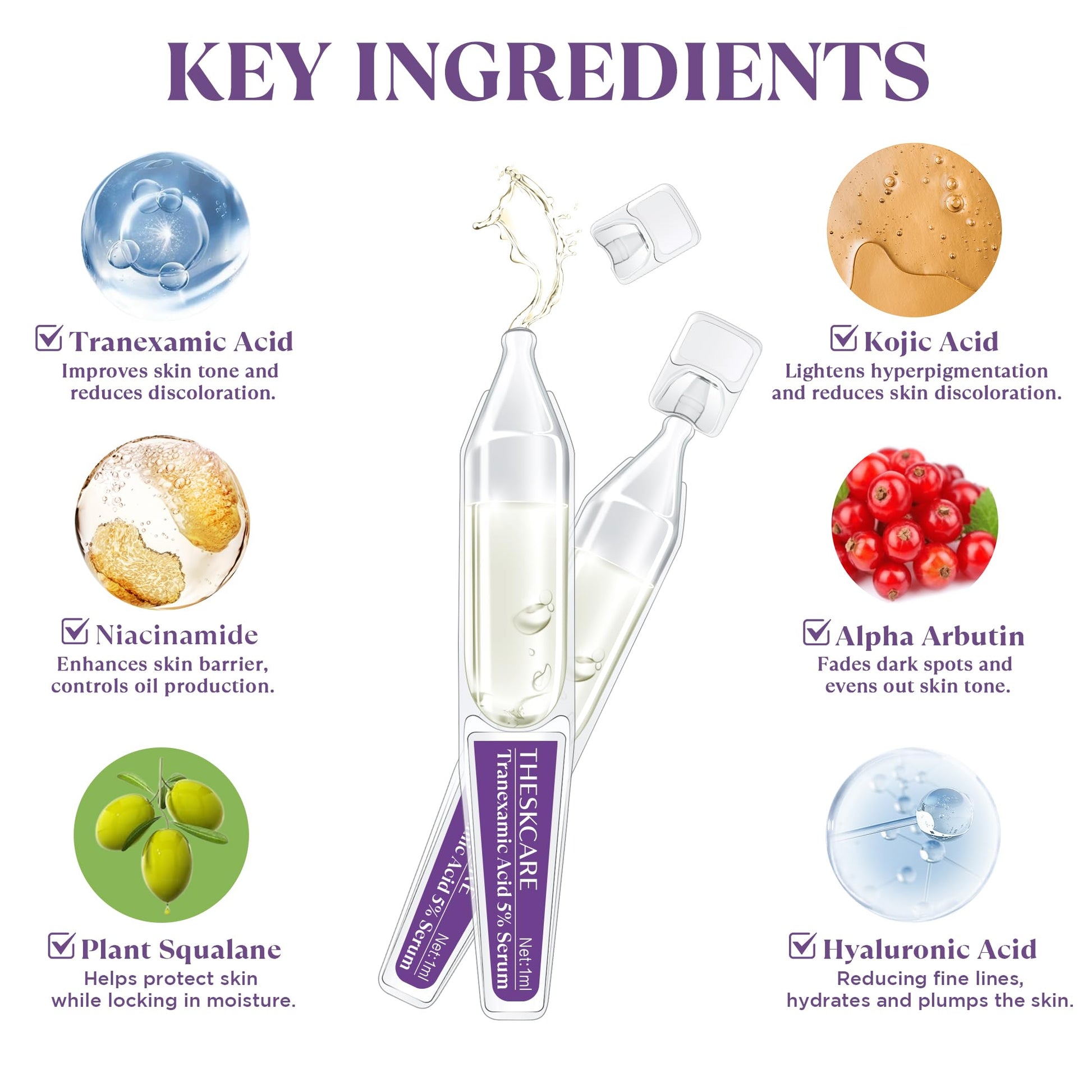 THESKCARE 5% Tranexamic Acid Serum for Face - Dark Spot Corrector for Melasma & Hyperpigmentation - Brightening Serum for Uneven Skin Tone - 30x1ml Single-Use Ampoules (30-Day Supply)