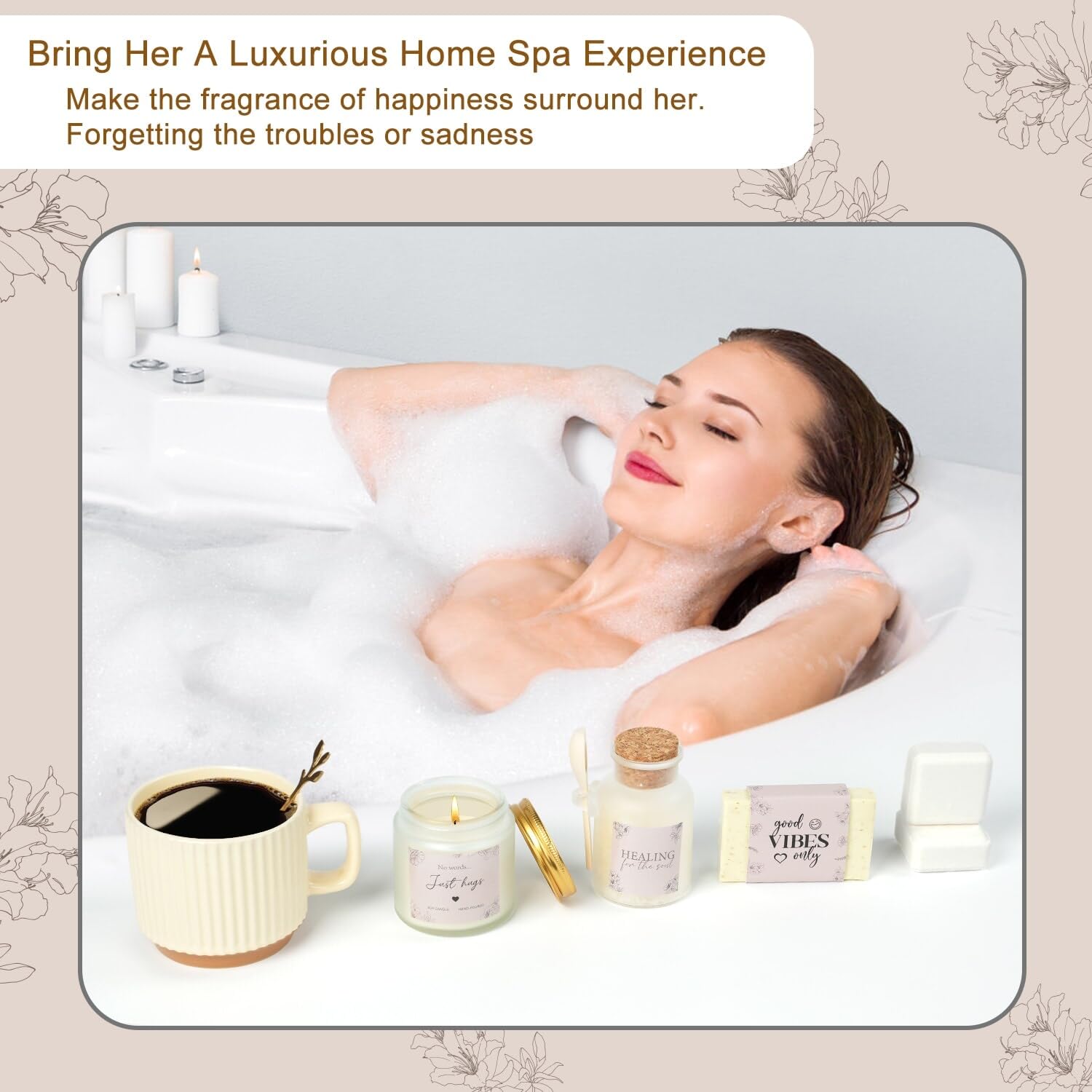 - Bathtime Bliss: A Spa Gift Basket That Whispers "You Deserve This". Watch her sink into serenity with every soak. The oatmeal handmade soap glides over skin like liquid silk, the healing bath salt dissolves stress away, and the milk bath bombs turn water into cloud-like comfort. Paired with the wooden massage roller (perfect for sore shoulders), this is more than a get well soon gift for women – it’s a love letter to her resilience
