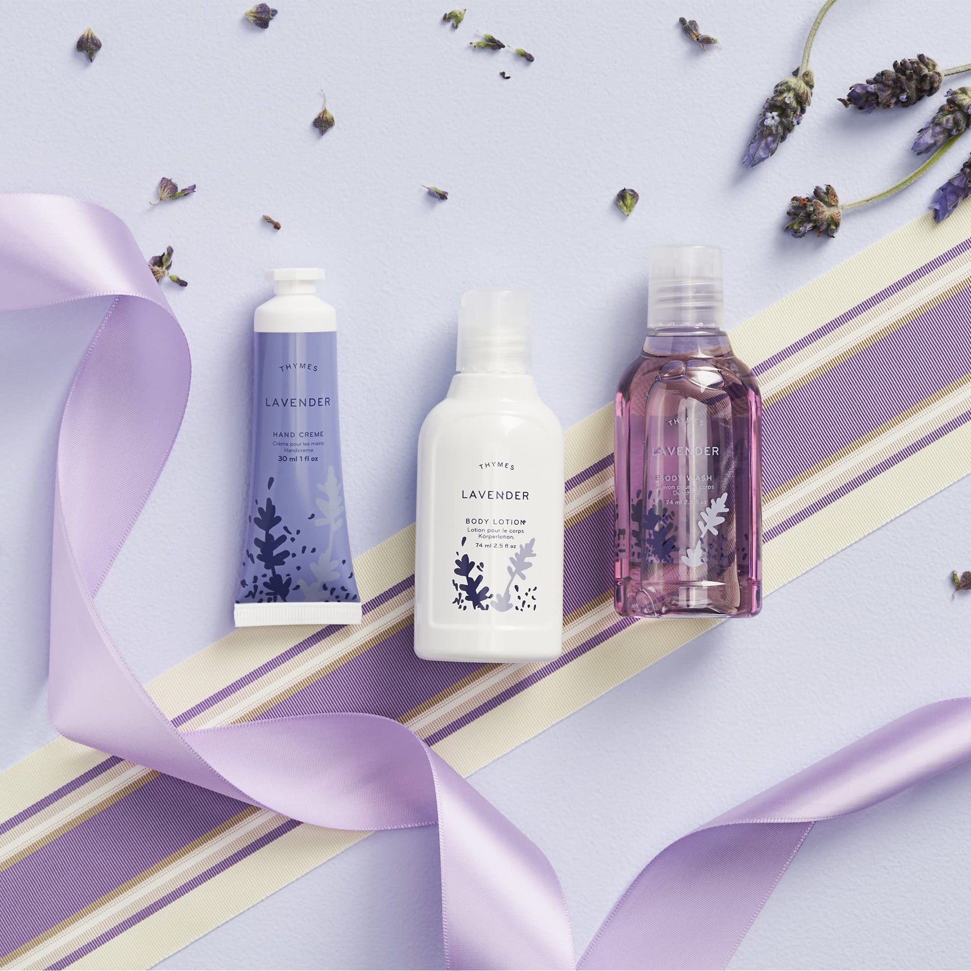 Thymes Travel Set and Beauty Bag - Contains Body Wash, Body Lotion & Hand Cream - Lavender