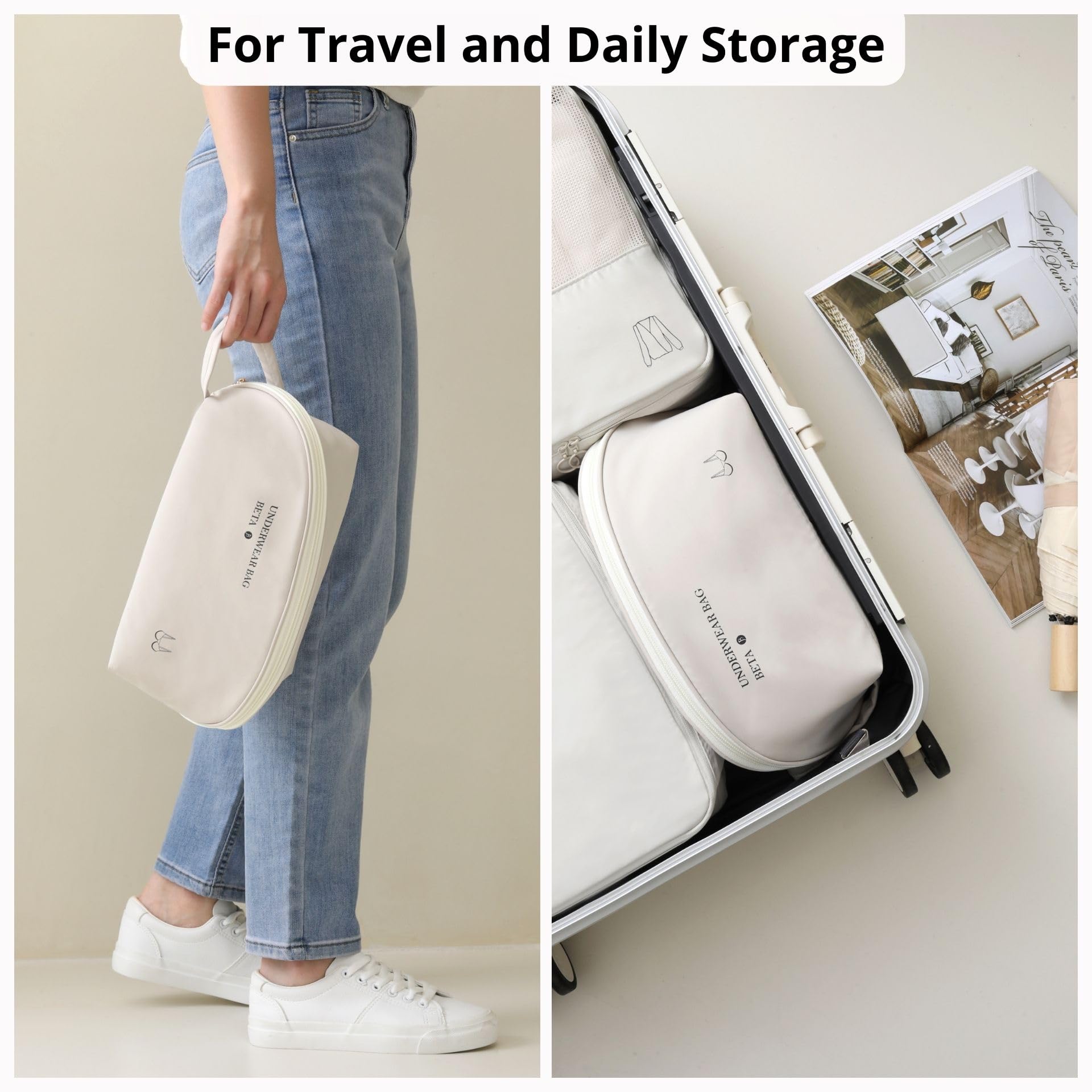 tianzong Travel Underwear Packing Cube for Women, Portable Luggage Organizer Bag, Multi-compartment Versatile Storage Bag for Suitcase (1 Pack, XL Beige)