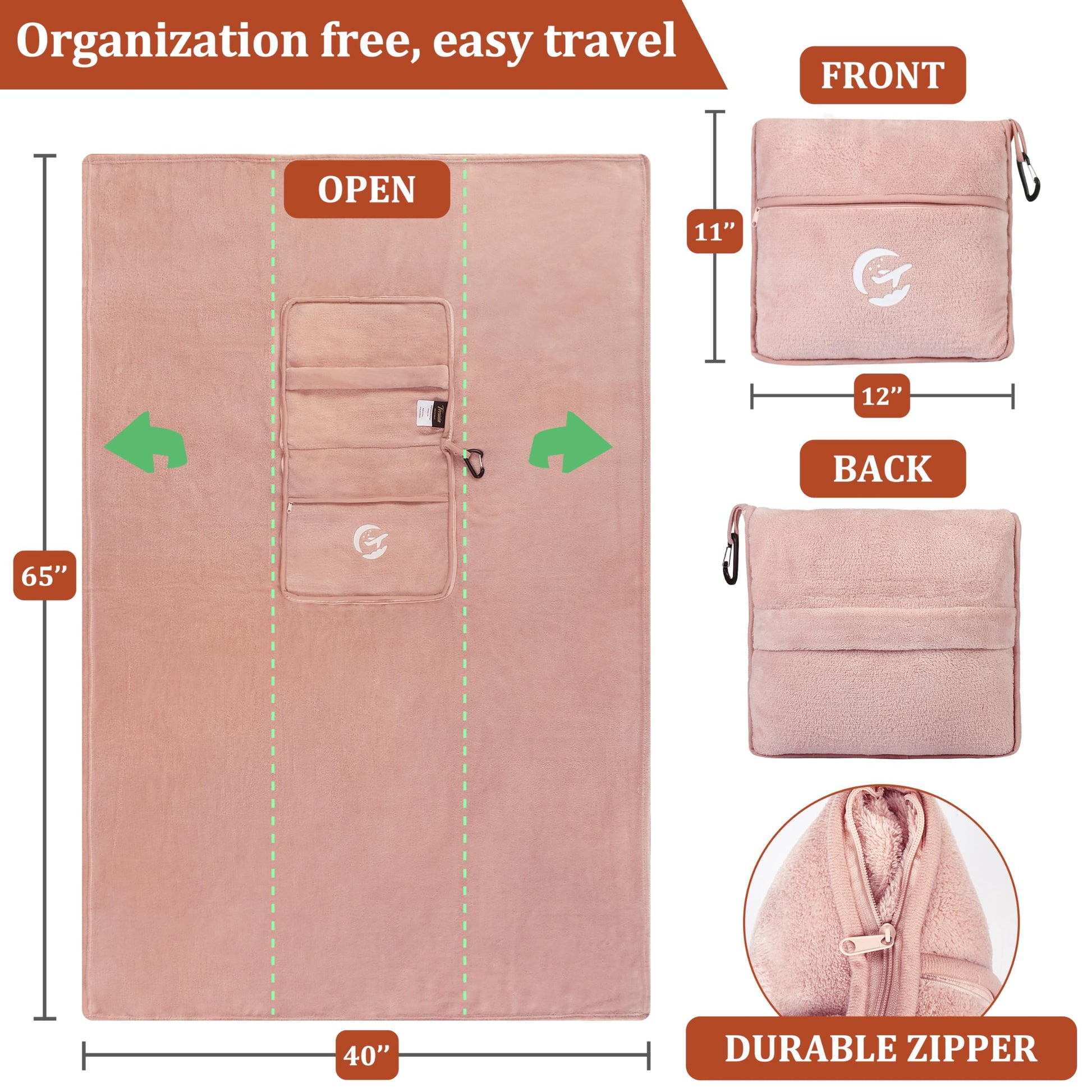 - High-quality and soft micro-long plush material: Crafted with 260g coral fleece material, our travel blanket aims to provide a premium soft touch experience. Its micro-long plush design emphasizes comfort and warmth, ensuring a cozy feeling reminiscent of home during travels such as car rides, flights, airports, or camping trips.
