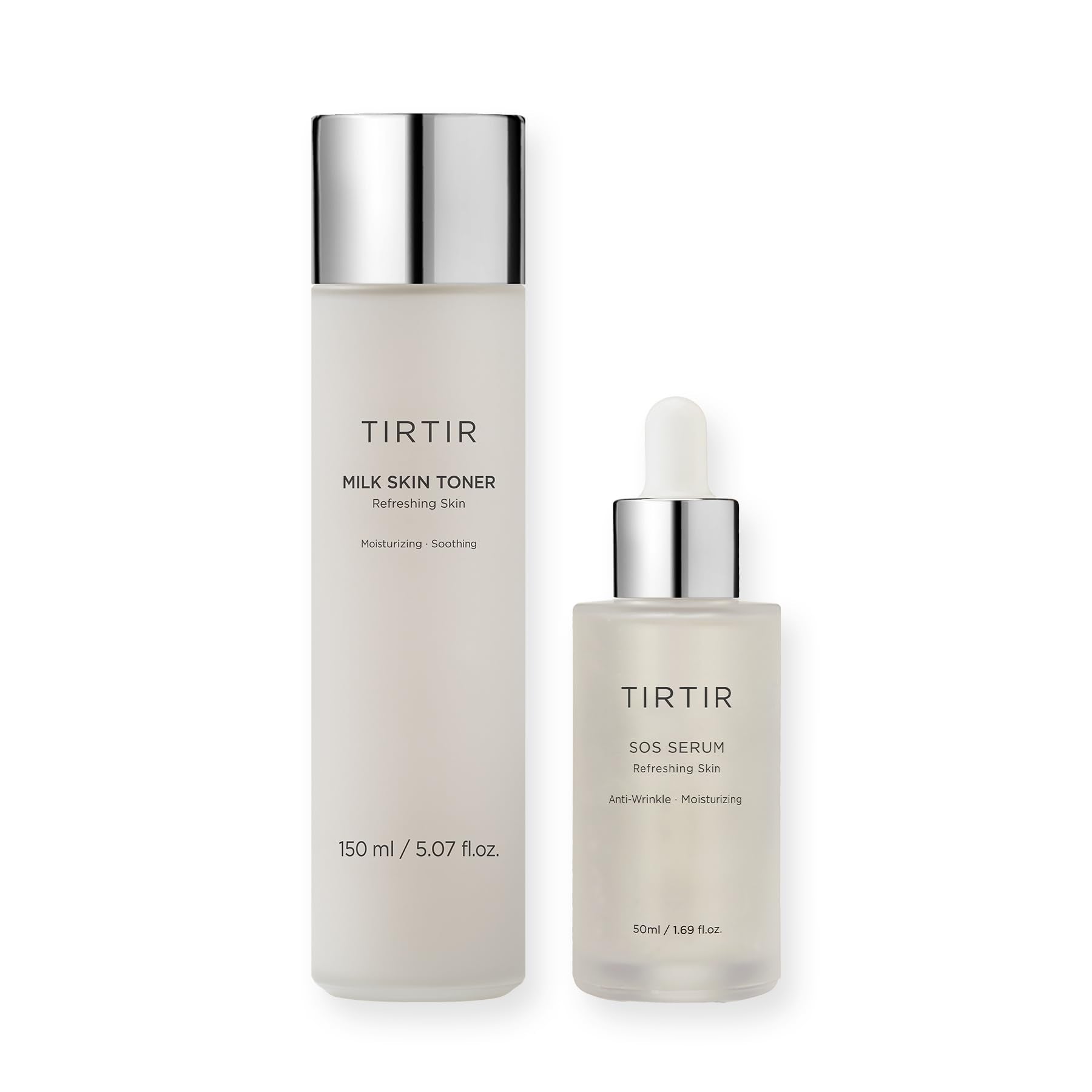 Details: Daily Hydration Set: Keeps your skin moisturized, radiant, and fortifies your skin's natural barrier. 1. TIRTIR Milk Skin Toner | Deep Moisturizing, Instant Glow, 2% Niacinamide, Chamomile, Rice Bran Extract, Ceramide, Panthenol, Paraben-Free, Nature-Oriented Ingredients for Dry Skin, 5.07 fl.oz. 2. TIRTIR SOS Serum - Radiant Glow Boosting Face Serum - Plumping, Anti Aging, Hydrating - Visibly Smooth and Glowy Skin - Fragrance Free Serum for All Skin Types, 1.69 fl.oz.