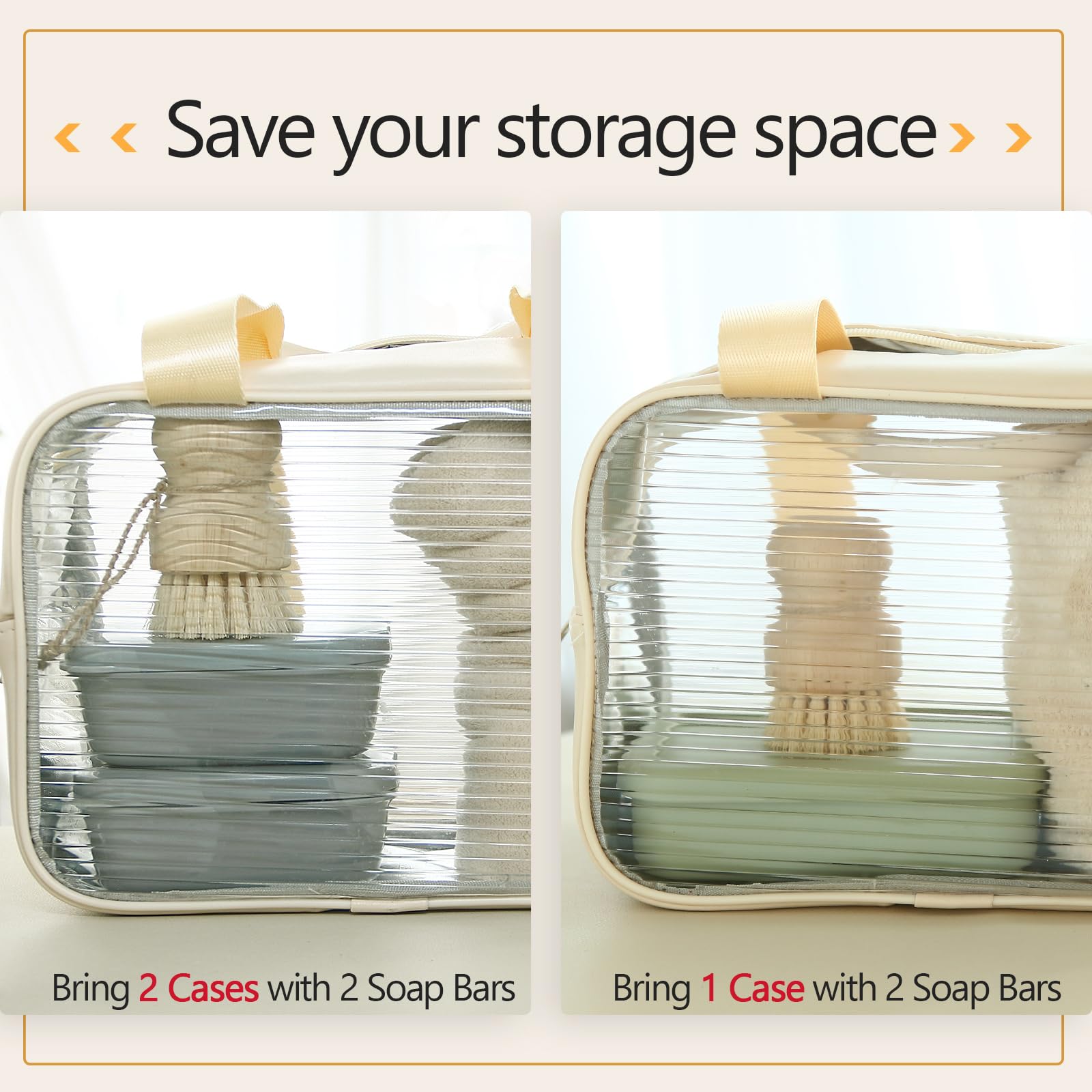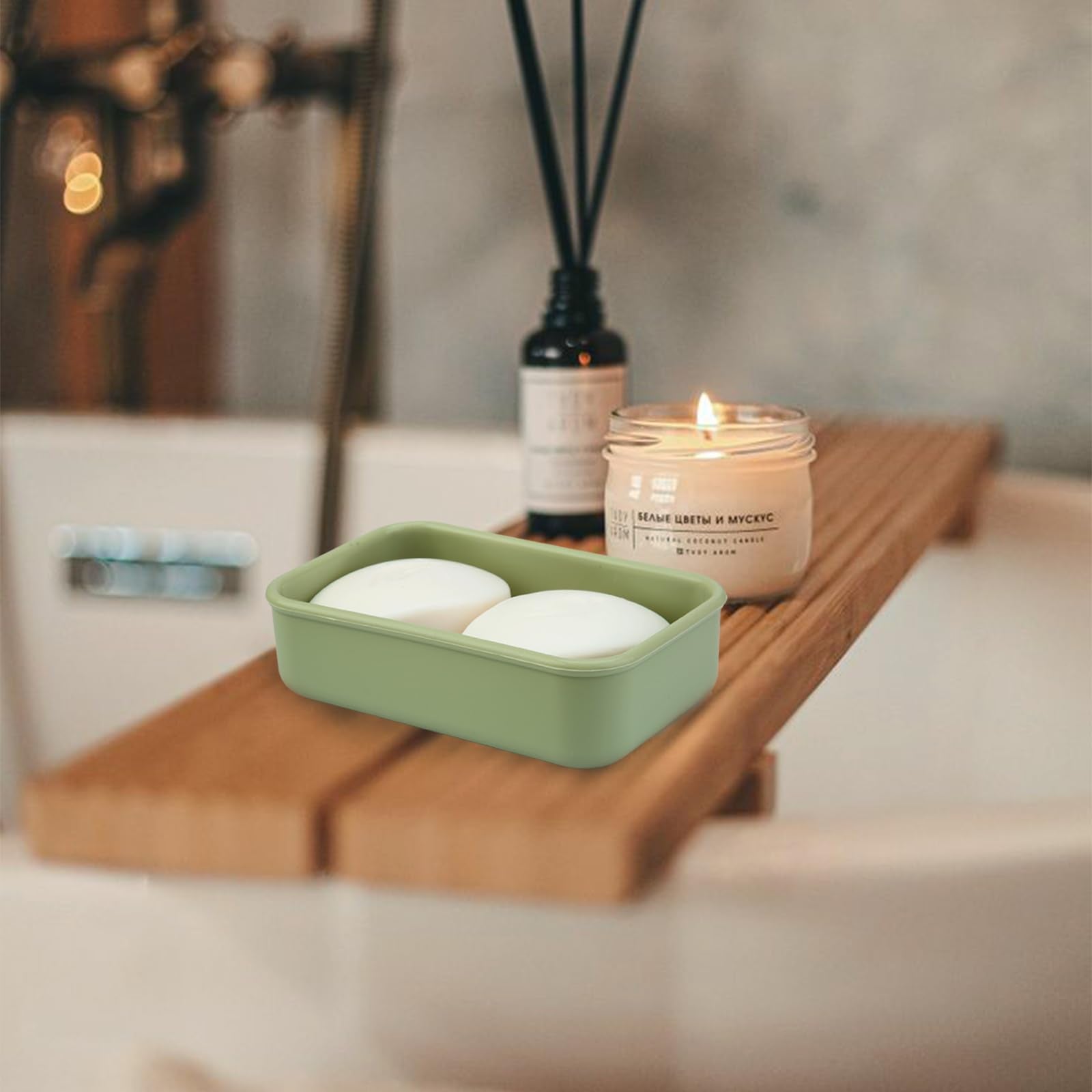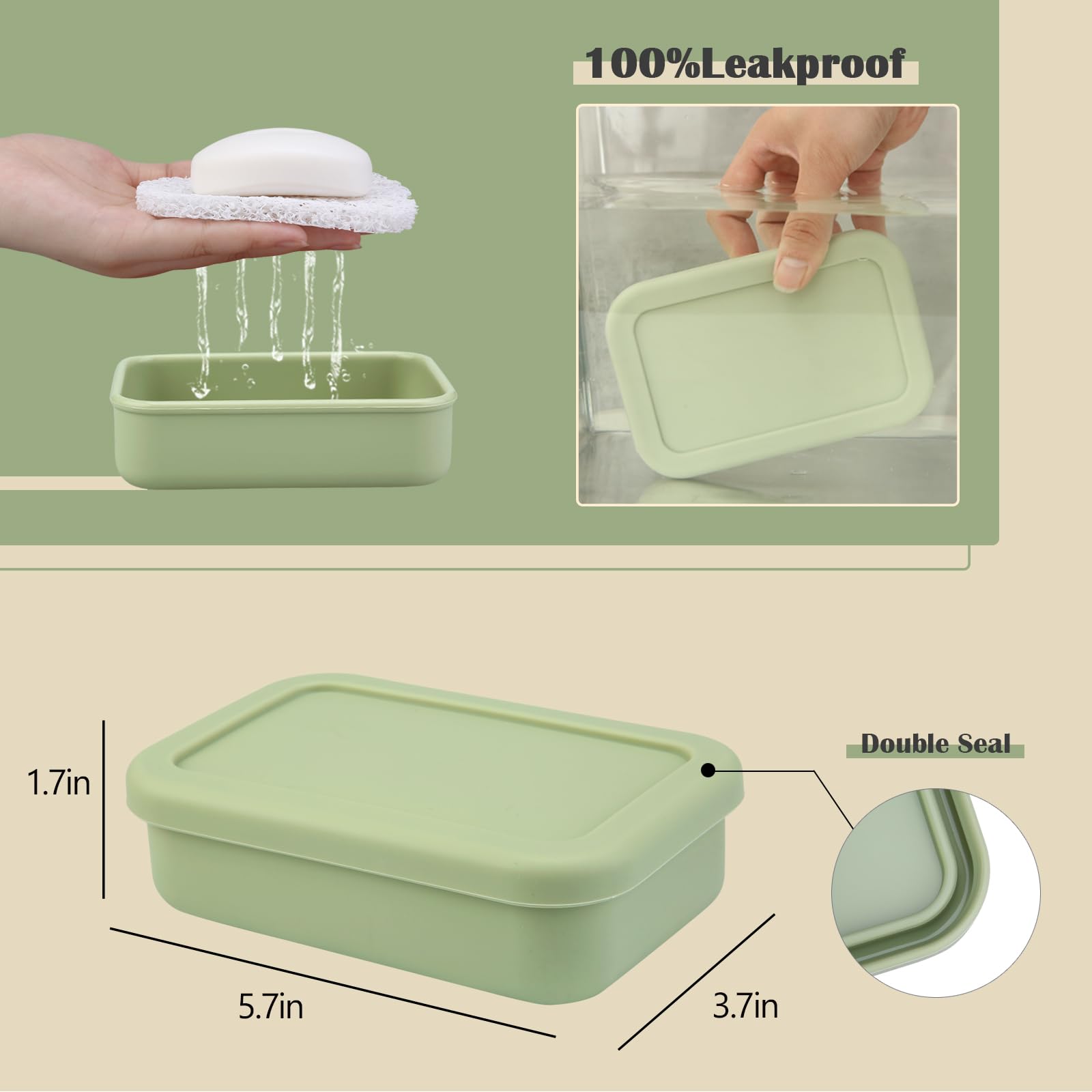 TITATI Large Travel Soap Case, Silicone Soap Holder with Drainage Tray, Portable Shampoo Bar Case for Shower, Camp, Gym (Pea Green)