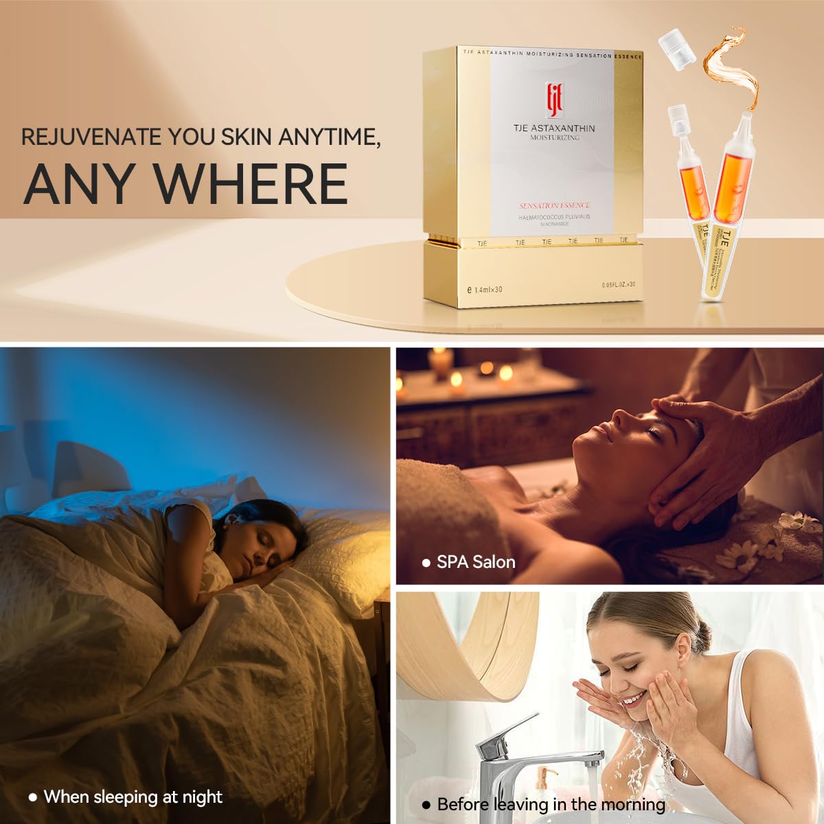 TJE Astaxanthin Serum for Face, Hyaluronic Acid Ampoules with Astaxanthin, Anti-Aging, Fine Lines, Boost Glow, Pore Minimizingm Antioxidant Nourishing Blend - 1.4ml*30pcs