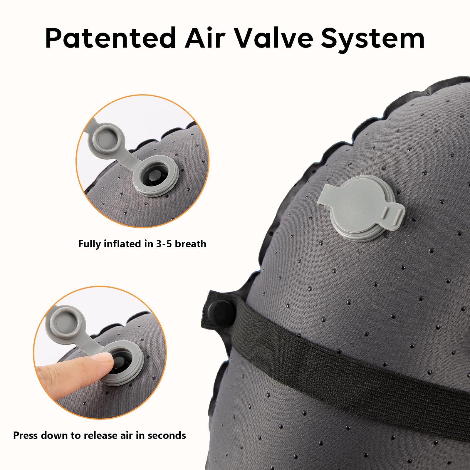 - Anti-Slip Design: It is made of thickened TPU material, effectively preventing air leakage. The back of the air pillow is equipped with anti slip adhesive points. An additional elastic band can prevent the pillow from moving around