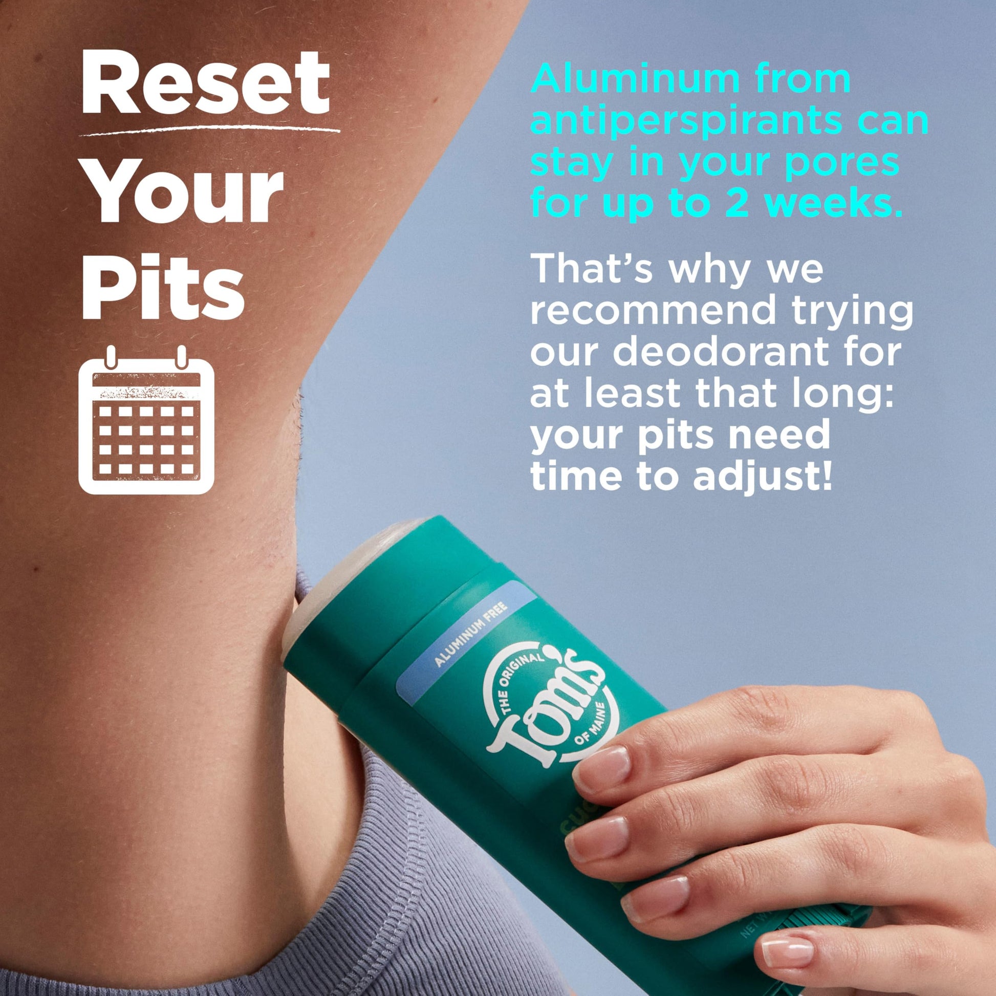 Details: Tom’s of Maine Unscented Natural Deodorant is a breakthrough in odor and wetness protection. Powered by naturally derived, moisture-locking ingredients that keep you feeling confident all day long. Designed for a smooth glide, our deodorant goes on clear and stays clear, ensuring a seamless application every time. Available in an unscented option for those who prefer a fragrance-free experience; keeping you feeling fresh and protected without any added scent. Our formula is aluminum free, dermatologist tested, and free from artificial fragrances, dyes, preservatives, and baking soda. Plus, it’s cruelty-free, never tested on animals. We’re committed to sustainability, which is why our containers are made with 100% recycled plastic. As a member of The Recycling Partnership (TRP) polypropylene (PP) coalition, Tom's of Maine actively supports additional PP recycling initiatives across the United States. Transitioning to a natural deodorant? Give your body time to adjust—aluminum from antiperspirants can linger in your pores for about two weeks. After that, you’ll experience the full benefits of our natural, effective formula. Tom's of Maine: A natural approach to personal care that doesn't compromise on performance. Choose your favorite scent and enjoy all-day freshness.