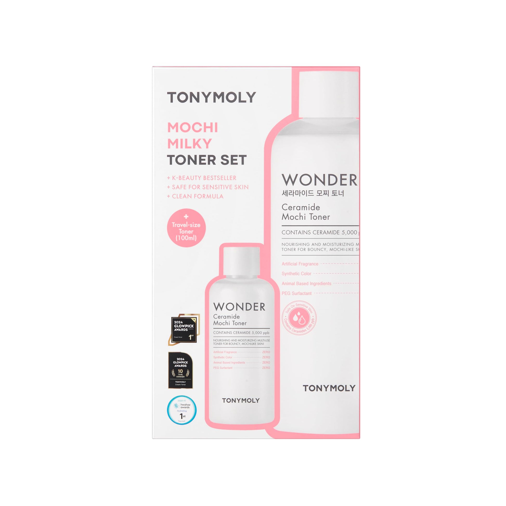 TONYMOLY Mochi Milky Toner Set – Hydrating Korean Toner with Ceramide, Cica, Panthenol & Hyaluronic Acid – Strengthens Skin Barrier, Soothes & Moisturizes – 500ml + 100ml Travel Size Duo