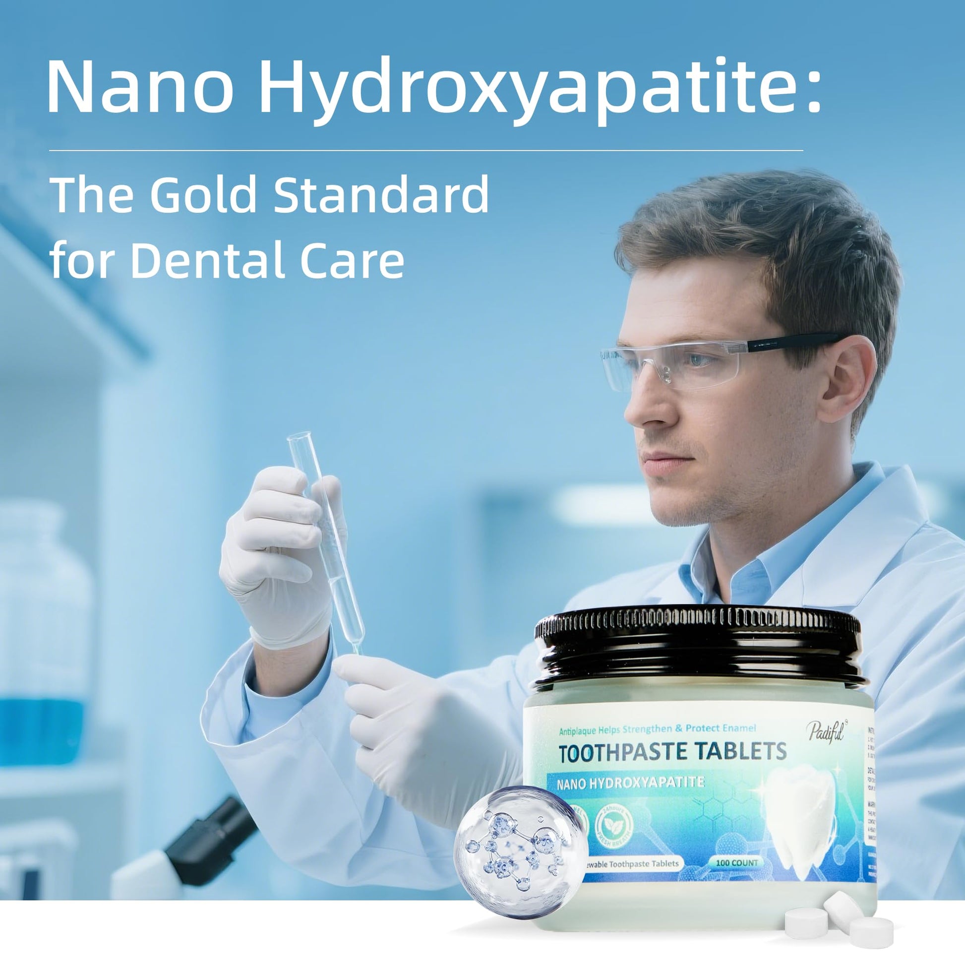 - Hydroxyapatite Toothpaste Tablets: Our toothpaste tablets include a revolutionary ingredient called Nano-Hydroxyapatite, which is mineral form of calcium found in bone, dentin, and dental enamel. It is a fluoride alternative that provides natural remineralization, protection against sensitivity, prevention of cavities, teeth decay and remove teeths surface stains for a beautiful and brigtht smile