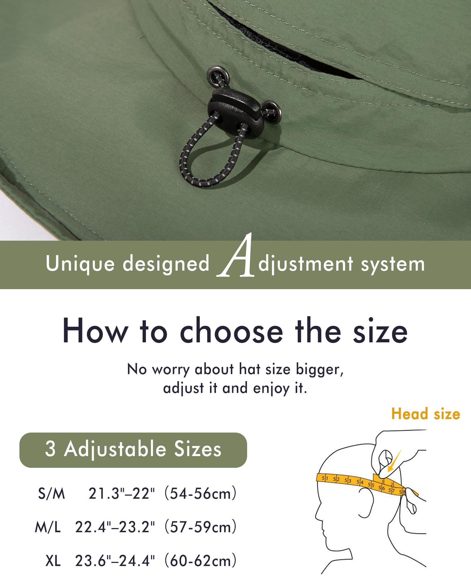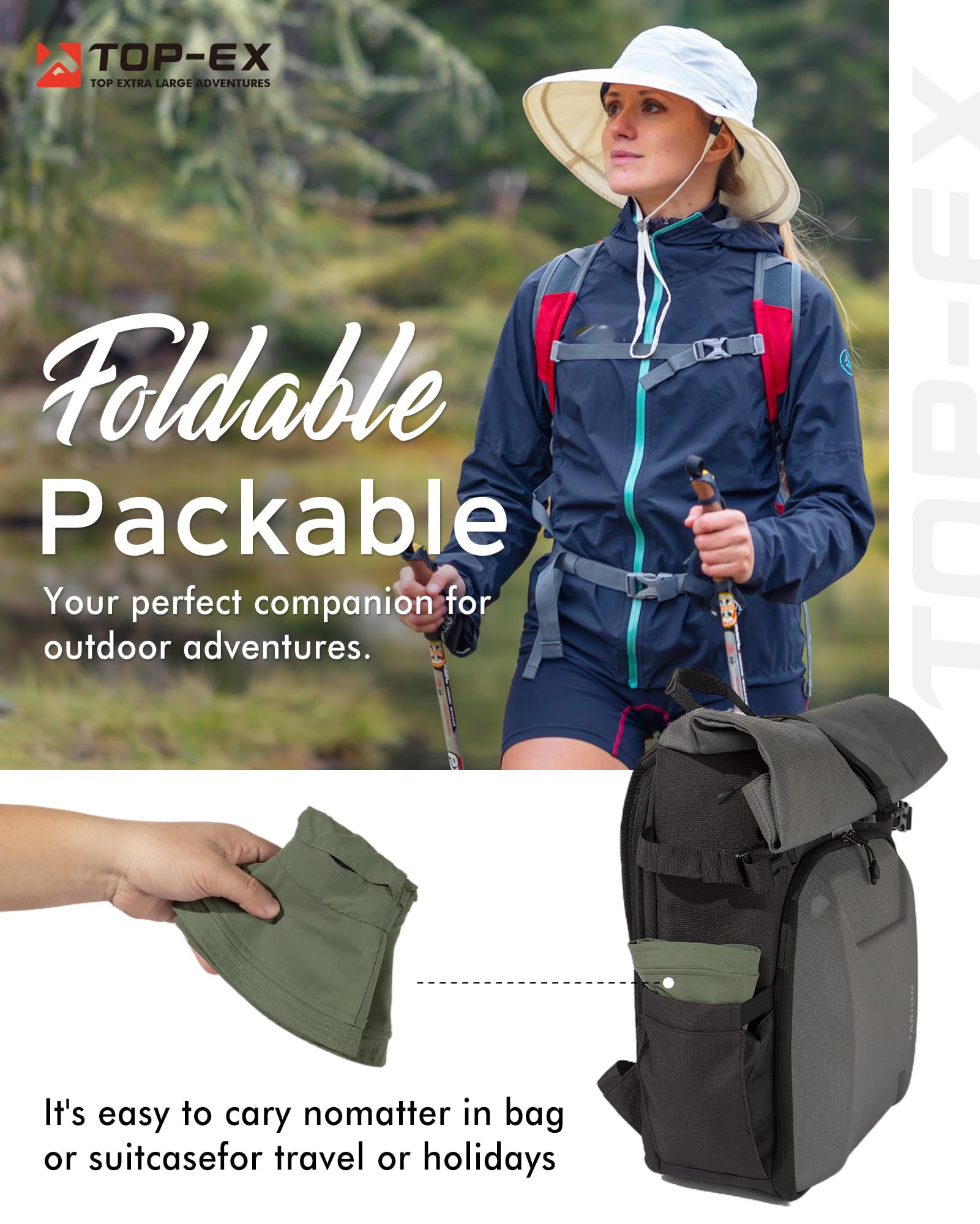 TOP-EX Waterproof Sun Hat for Women Wide Brim SPF 50 UV Protection with Chin Strap Packable & Foldable Bucket Hat for Travel Beach Outdoor Summer Gardening Hiking Fishing Camping Lightweight Green M/L