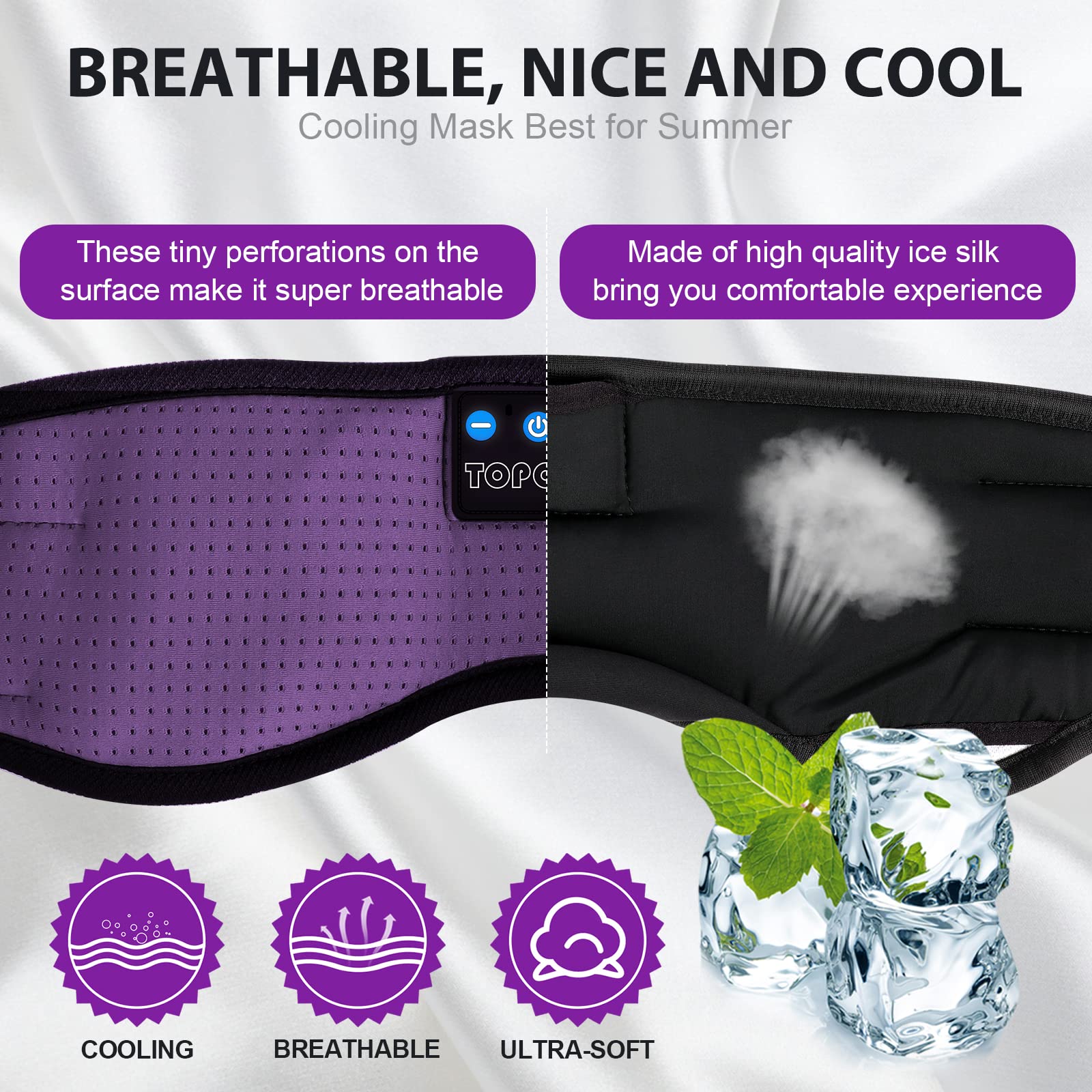 TOPOINT Sleep Mask with Bluetooth Headphones, Breathable Silk Eye Mask for Sleeping Men Women, Bluetooth Sleep Mask Blackout with Speakers, Microphone Handsfree, USB C for Travel Meditation Gifts