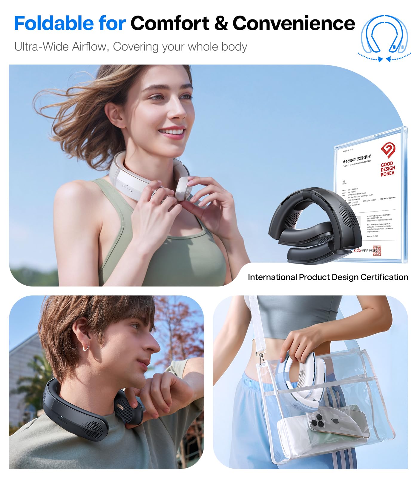- [Is the COOLiTE neck fan portable and comfortable?] Absolutely! COOLiTE portable neck fan is ultra-light at just 10.9 oz and folds to 50% smaller than traditional neck fans, making it easy to carry around in your bag. COOLiTE bladeless neck fan also fits with long hair under its microporous design. Whether you're on the go or relaxing, COOLiTE ensures a hassle-free, comfortable cooling experience