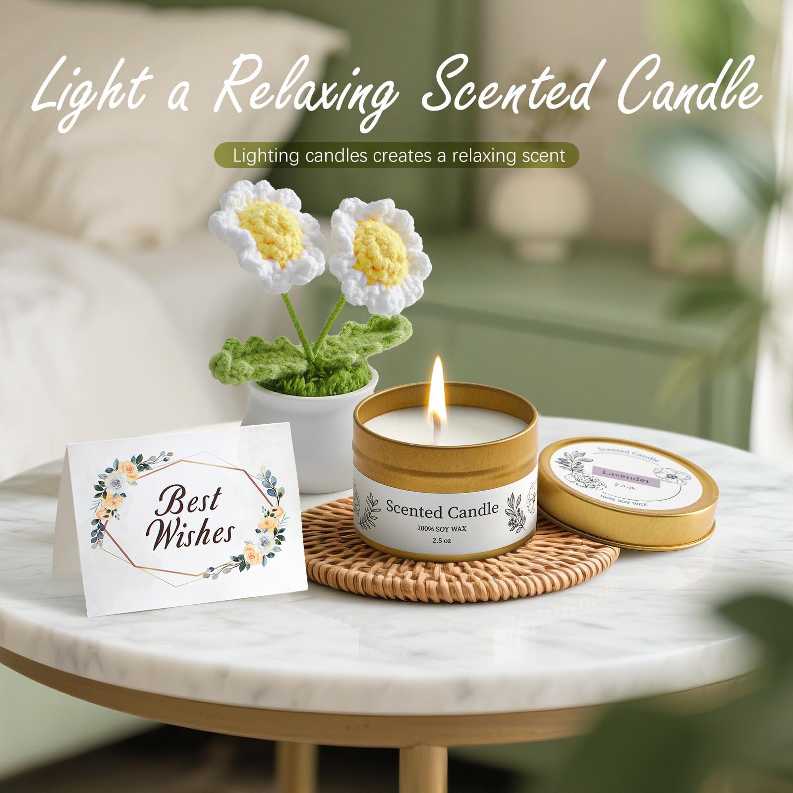 - Abundant Accessories: This get well soon gift basket for women features 11 curated items to comfort and uplift: a plush blanket with flower pattern, a 304 stainless steel insulated tumbler, jade gua sha and roller set, silk eye mask, avocado-scented handmade soap, lavender scented soy candle, mint bath bomb, fuzzy heart socks, a crocheted white daisy plant, greeting card, and gift box. A beautiful care package for women after surgery, illness, or emotional support.