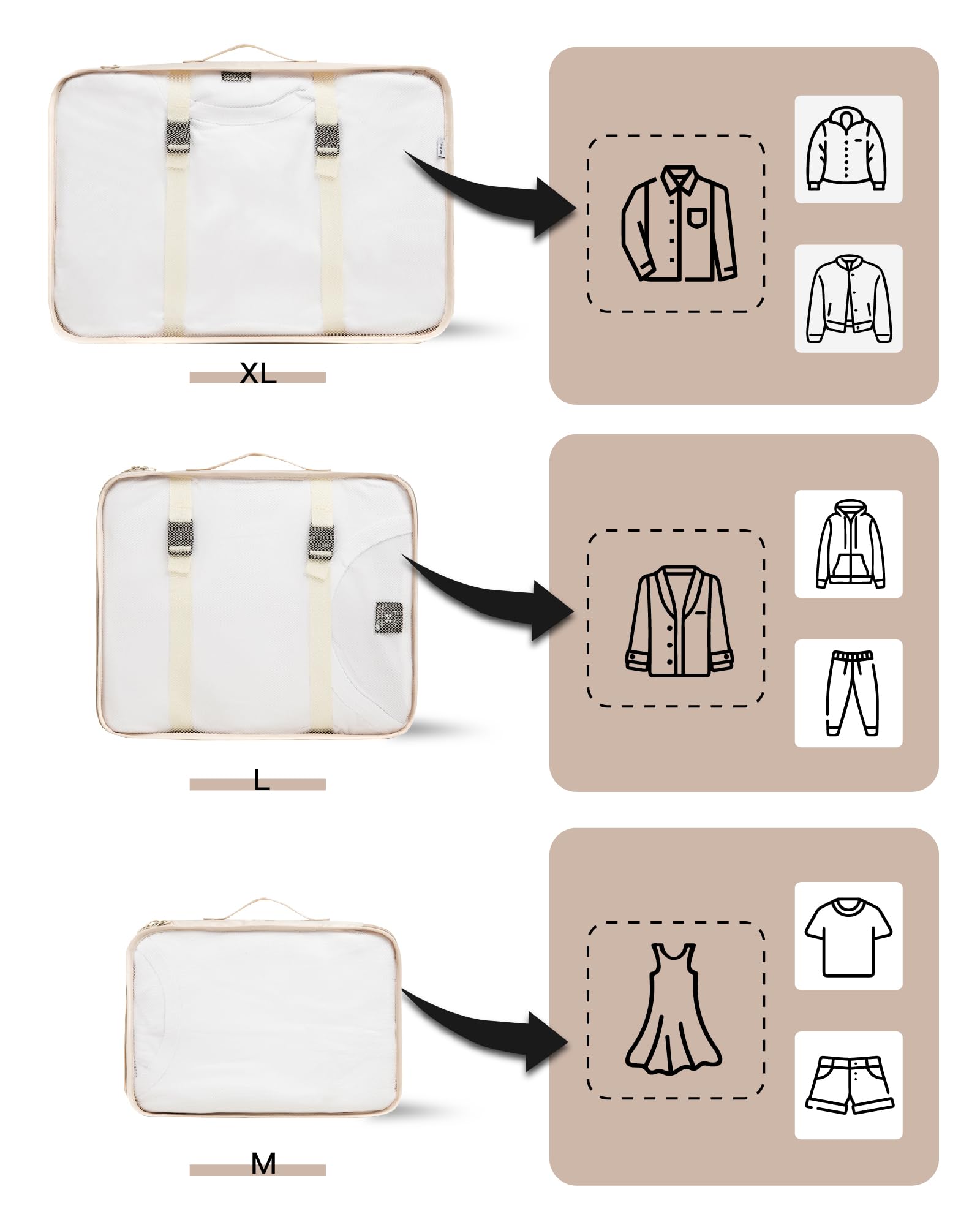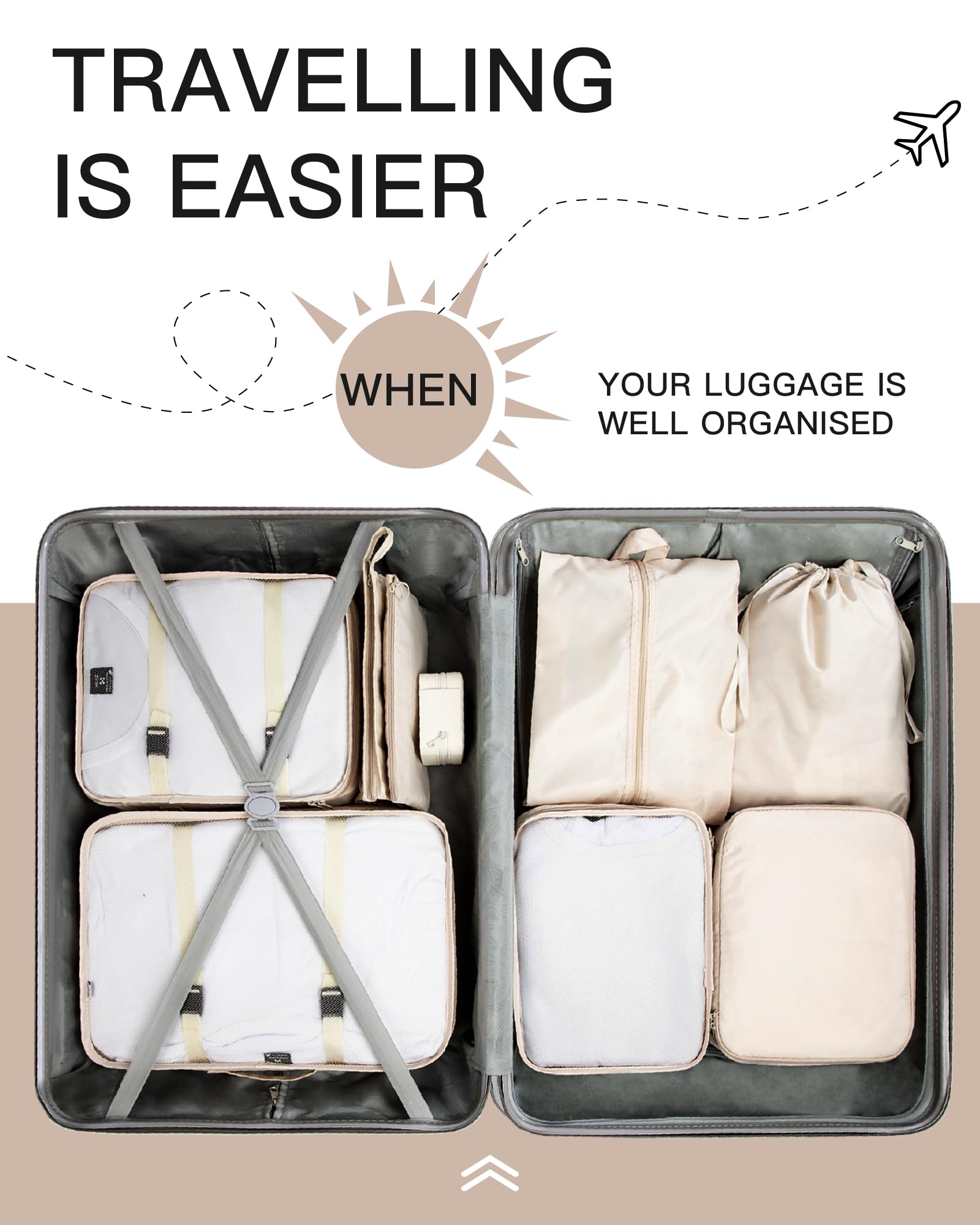 TRAILKICKER 9 Set Packing Cubes for Carry on Suitcase Travel Organizer Bags for Luggage Suitcase Organizer Bags Packing Cube Set for Packing Women Men (Beige)