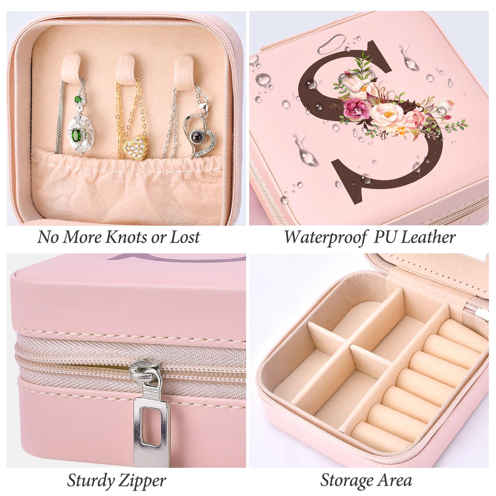 Travel Jewelry Case Box Organizer, Personalized Gifts for Women Wife Mom Aunt, Mothers Day Mom Gifts from Daughter Son, Bridal Shower Giftware for Women, Bridesmaid Proposal Unique Presents, Initial S