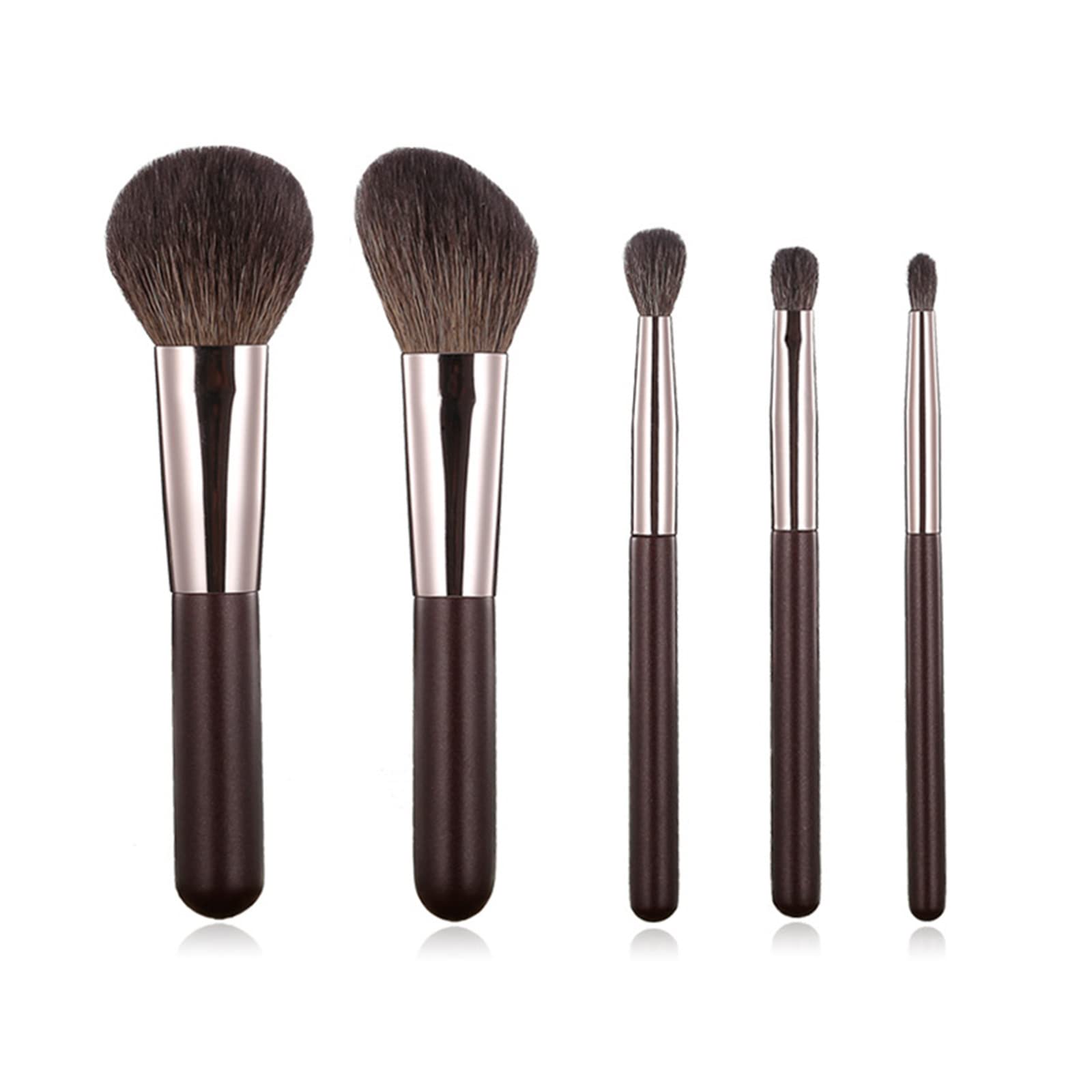 Travel Makeup Brushes Set w/Pouch, Portable 5PCS Professional Mini Cosmetic Brushes Kit for Powder Blush Concealers Contouring Highlighting