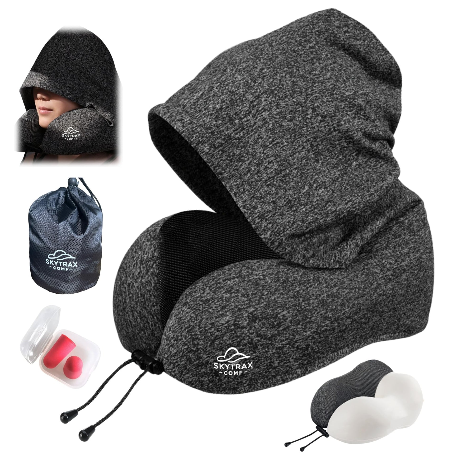 - 【Compact Design】Lightweight and easy to roll up into its carrying pouch, this airplane pillow with hood is a top choice among plane neck pillows for long flights. Slip it into your carry-on for convenient comfort on the go—perfect for road trips, camping adventures, or weekend getaways