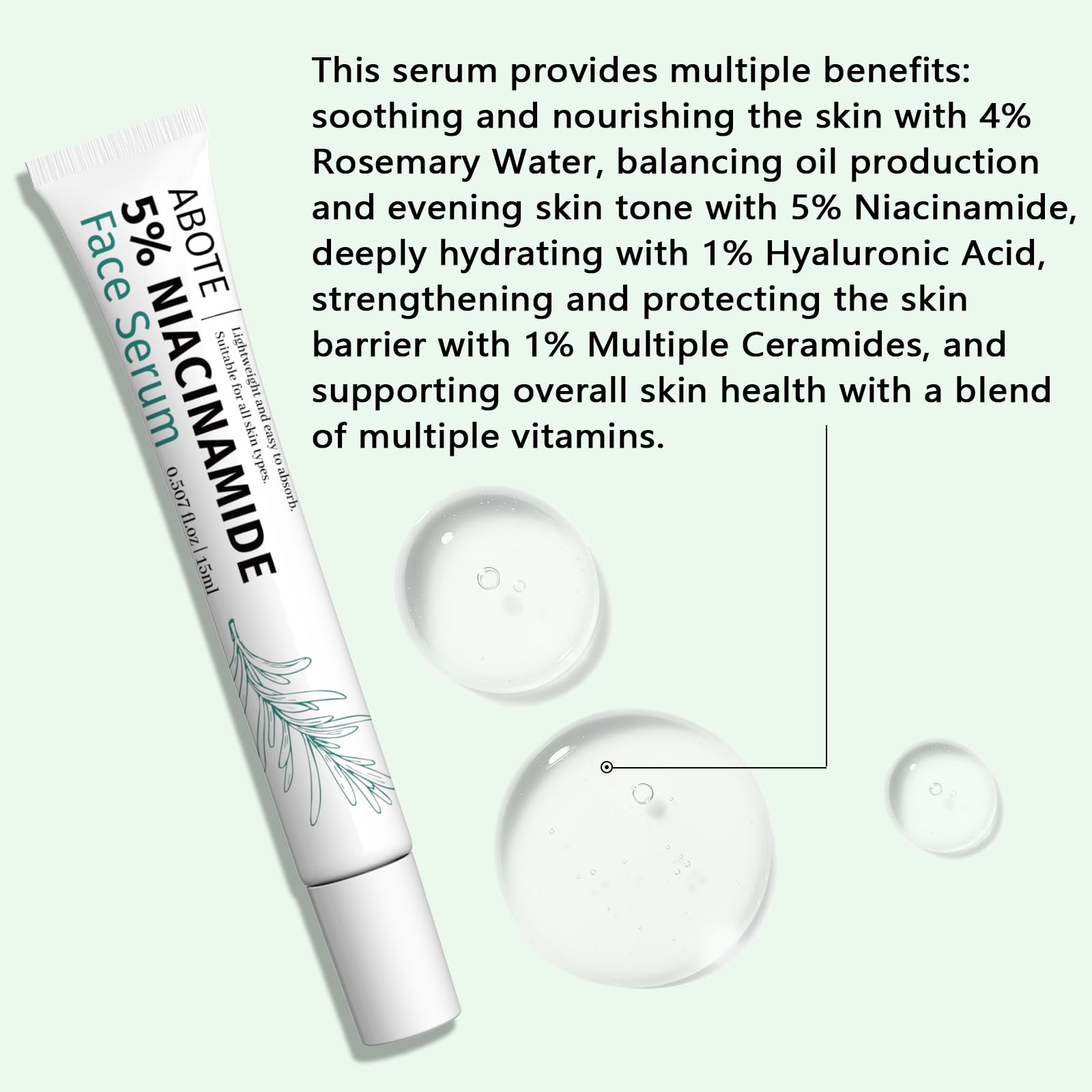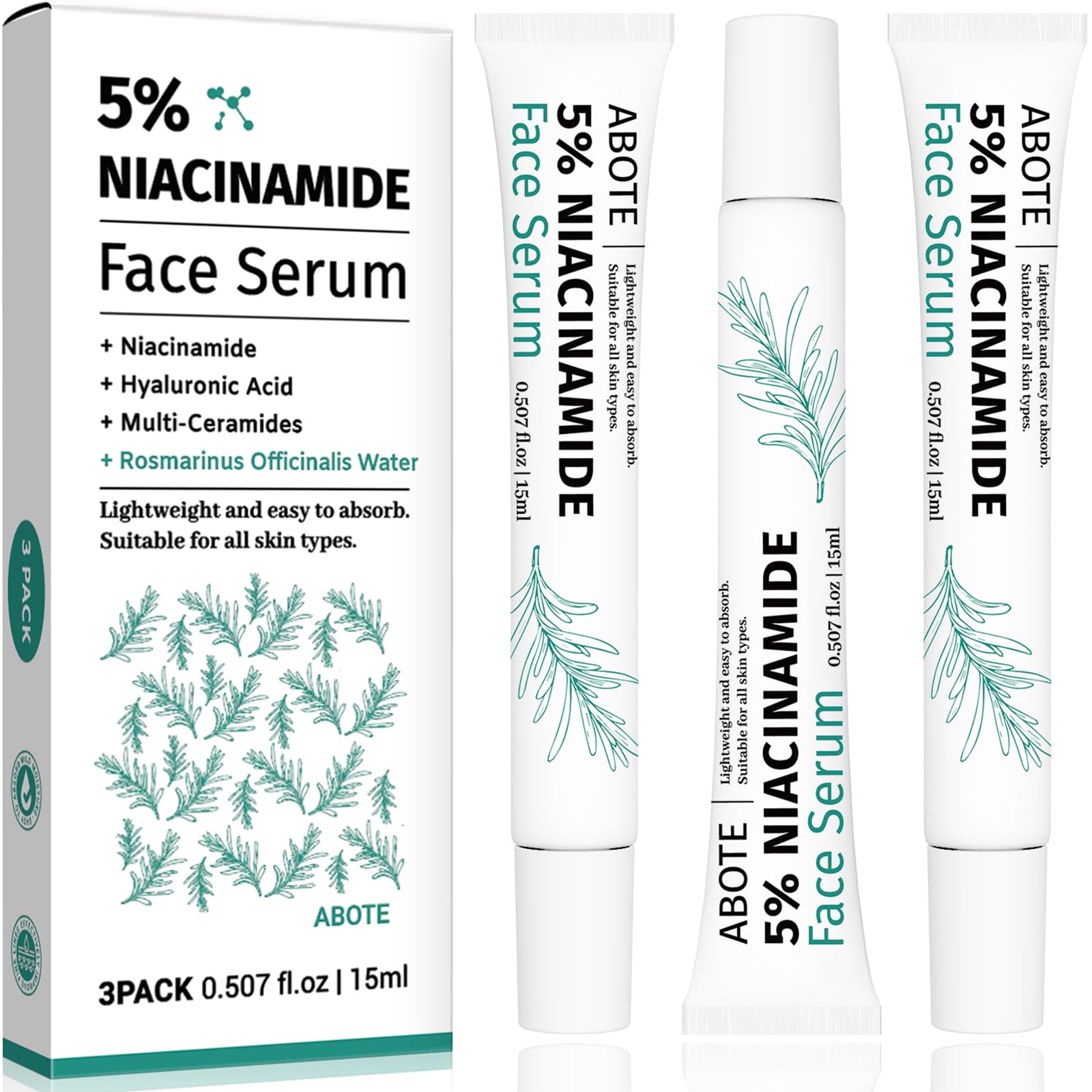 Travel Skincare 5% Niacinamide Serum with 4% Rosemary Extracts - Deep Hydration, Soothes Skin, Enhances Elasticity (3Pack 0.507 fl.oz | 15ml)