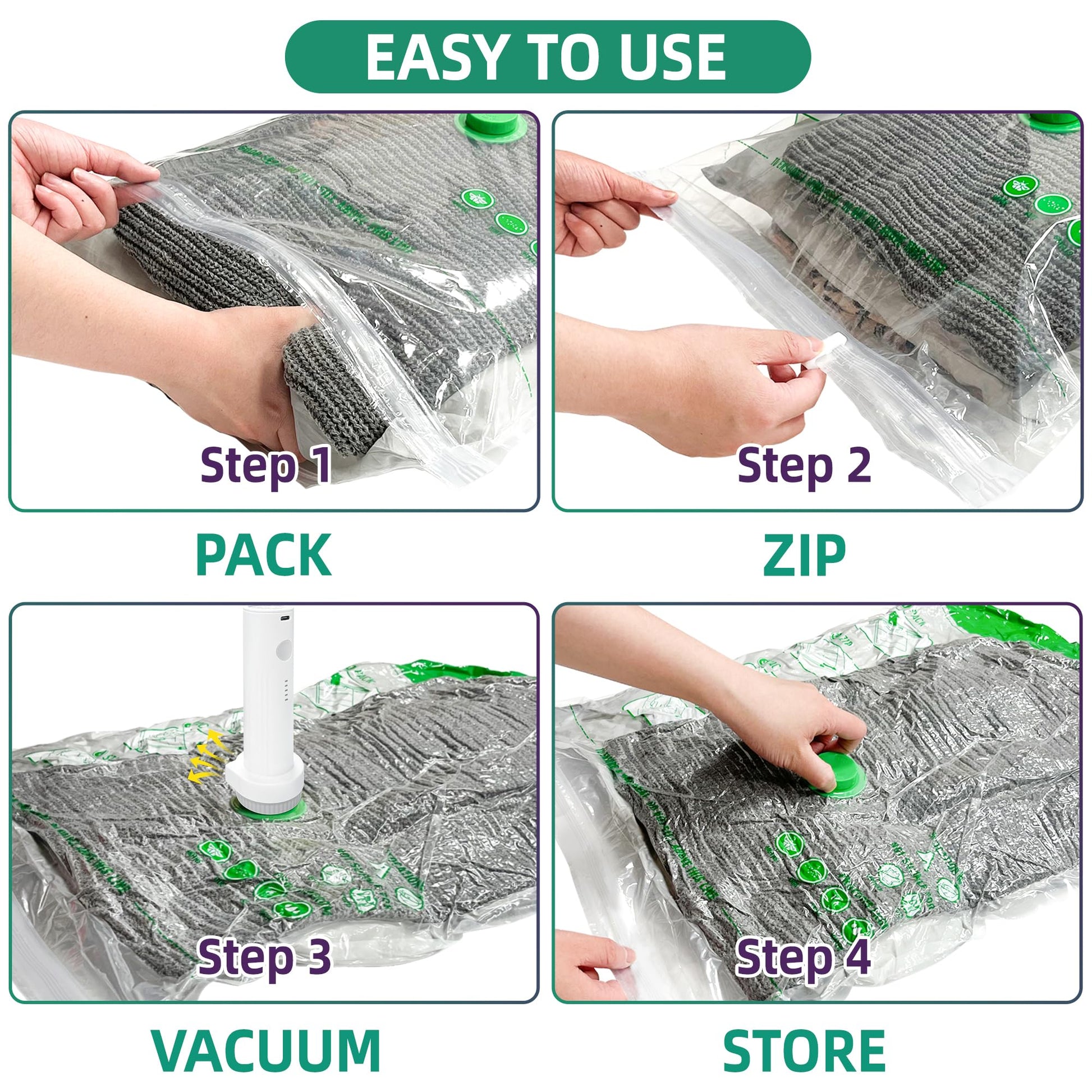- PORTABLE ELECTRIC AIR PUMP: The complimentary electric air pump is way more efficient and easier to use than hand pump, offering a hassle-free and time-saving solution for optimizing your storage space and achieving airtight seal. Simply plug it into the socket, attach it to the valve, turn it on, and in just a few seconds, your bags will be compressed.