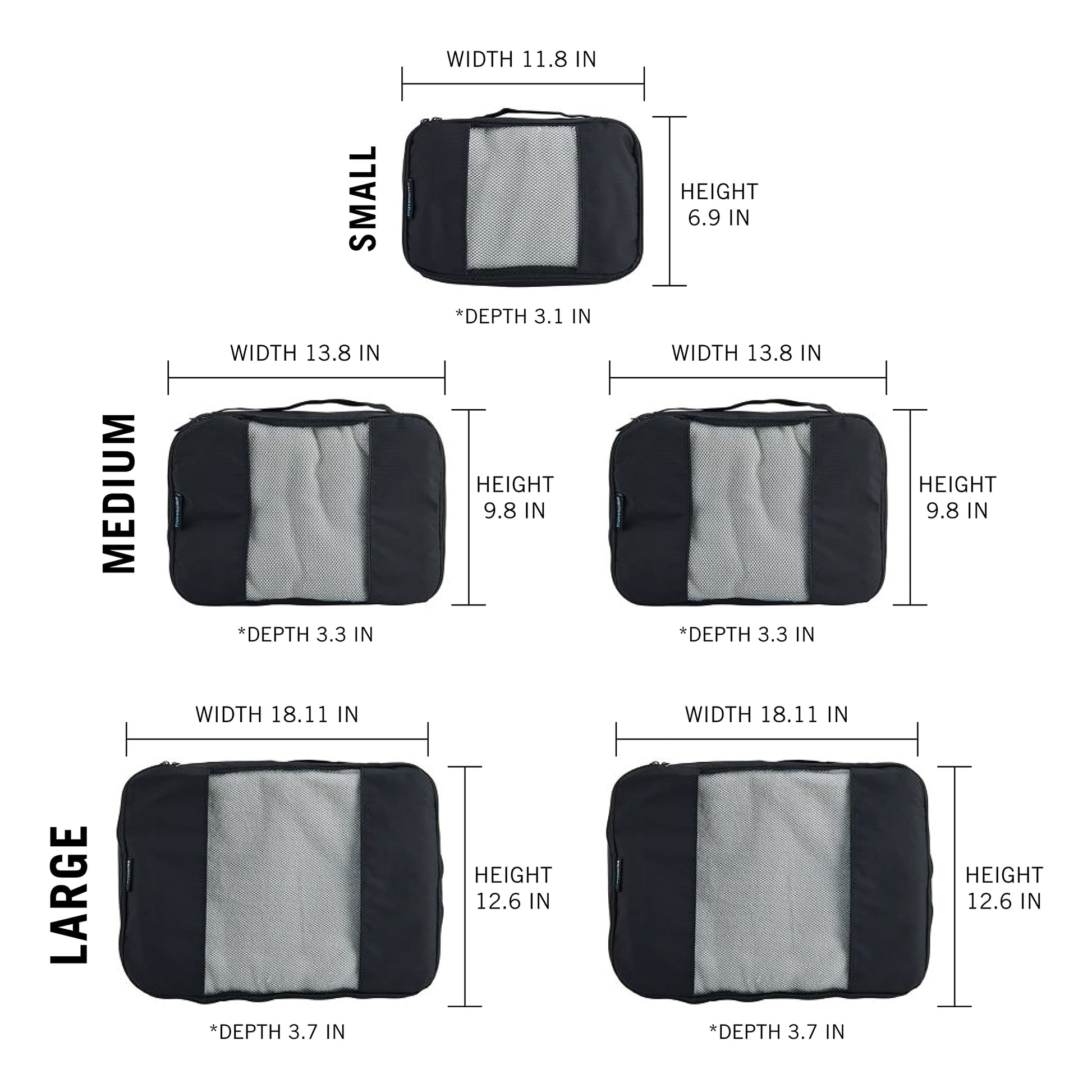 TravelWise Packing Cube System - Durable 5 Piece Weekender Plus Set (Black)