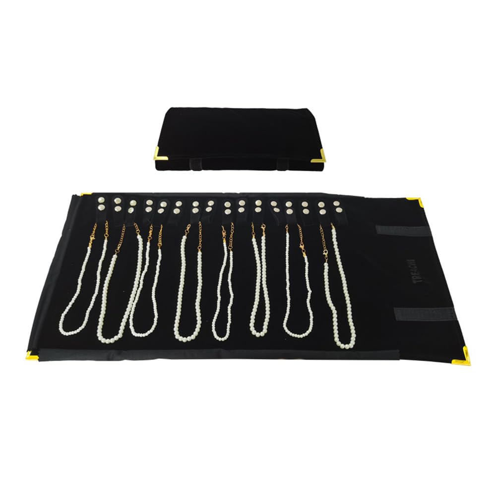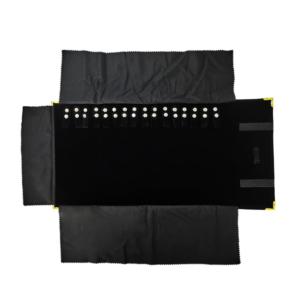 treachi Portable Jewelry Roll Metal Coner Bag Necklace Chain Braclet Black Velvet Travel Pouch