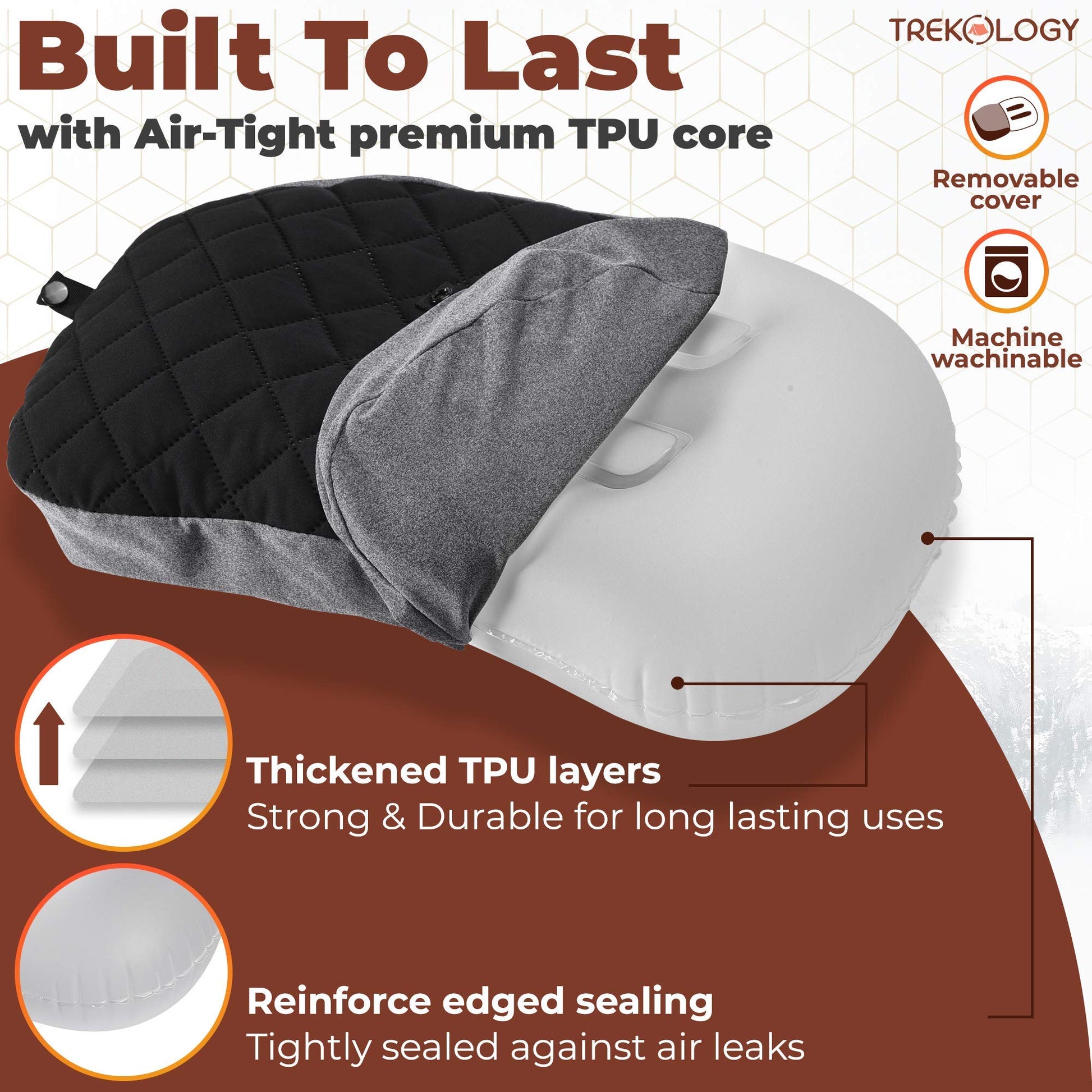 TREKOLOGY Camping Pillow with Removable Cover, Inflatable Pillow for Backpacking, Ultralight Inflatable Camp Pillows for Sleeping Portable Compact Pillow for Hiking Travel