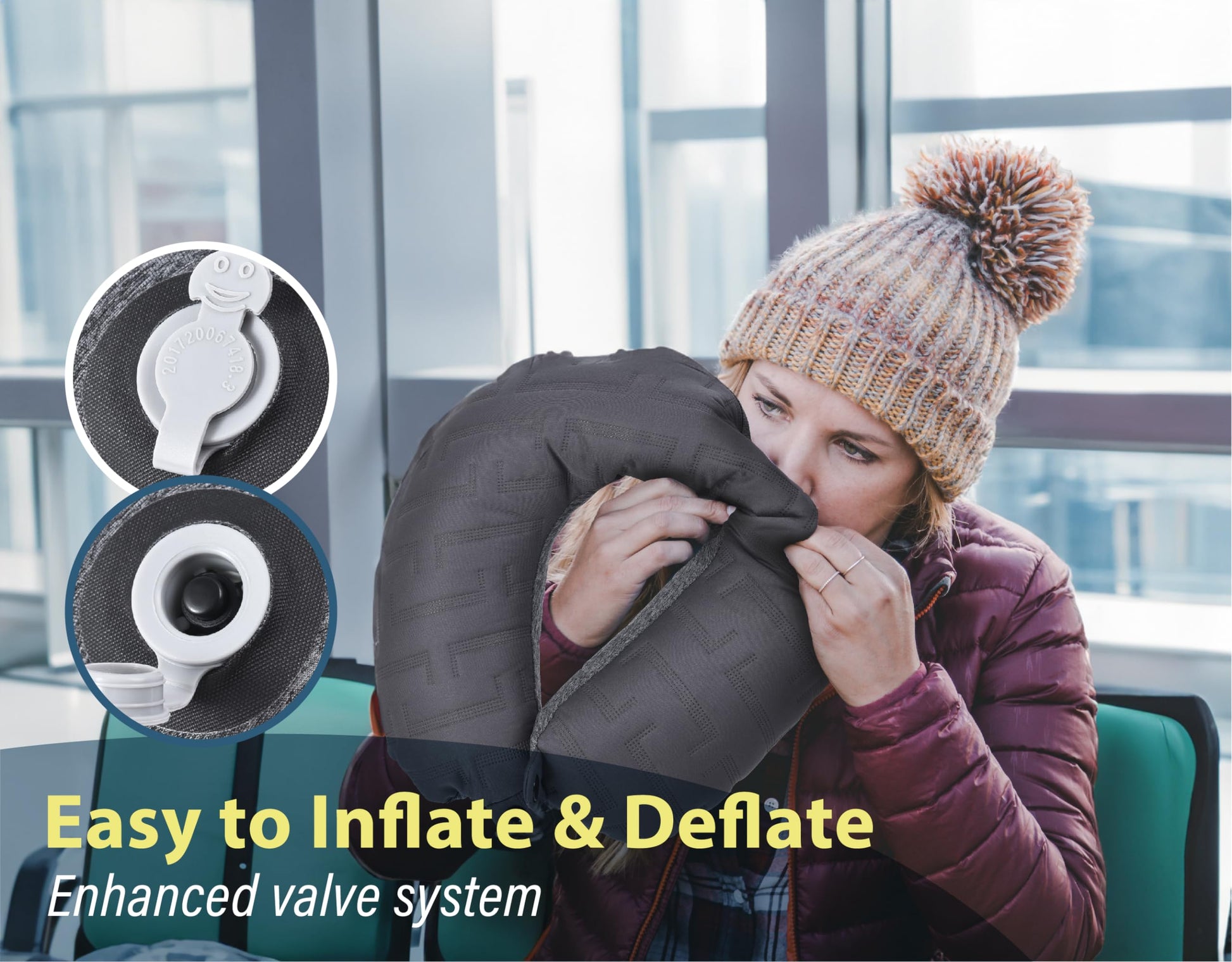 - ✅ INFLATABLE CUSHION FOR NECK SUPPORT – This inflatable pillow inflates in just seconds, allowing you to adjust firmness for your exact comfort. Whether you're sitting upright or reclining, it provides ergonomic neck support that helps prevent neck stiffness and sorenes