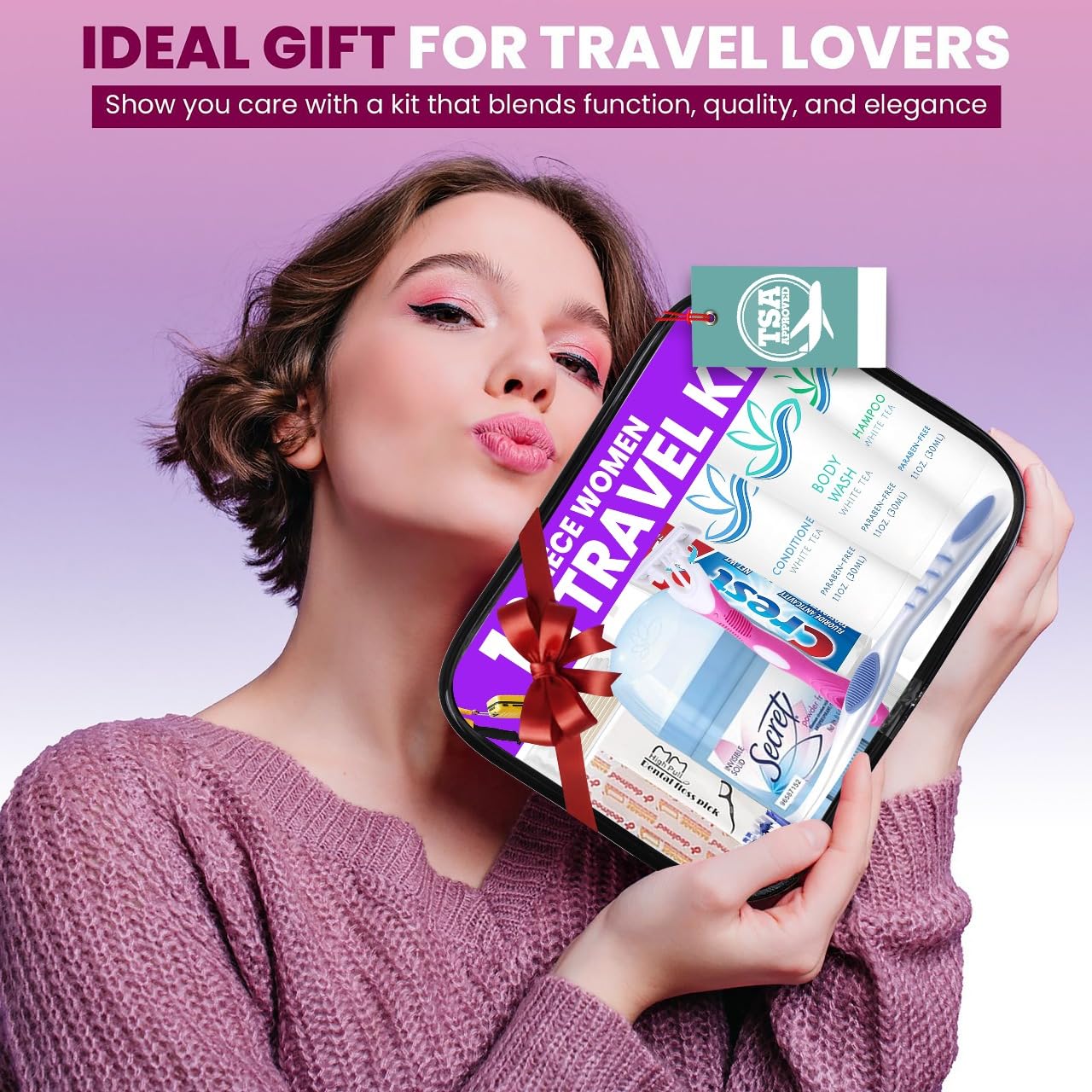 Trektote Travel Toiletry Kit For Women – 12 Piece Set Of Travel Size Toiletries, TSA Compliant, Travel Essentials, Includes Shampoo And Conditioner, Body Wash, Toiletry Bag & More