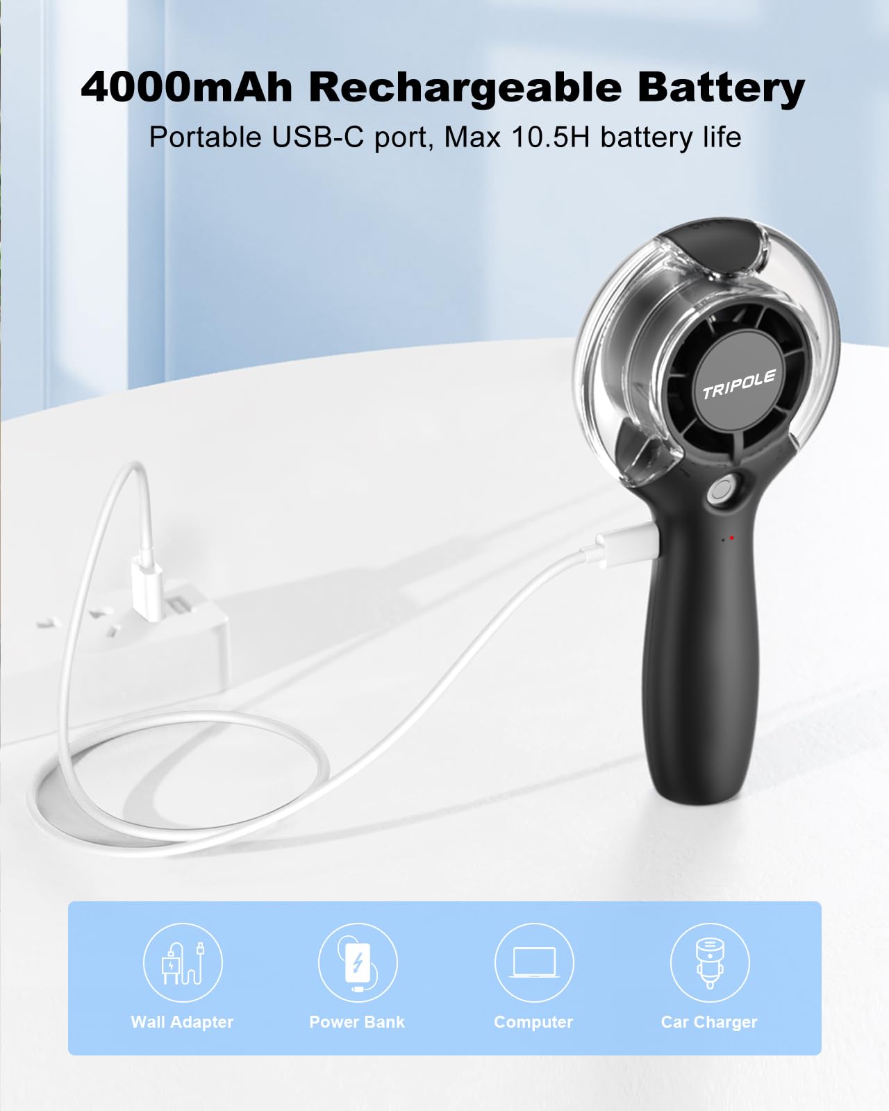 TriPole Misting Fan Portable Handheld Fan with Mist, 4000mAh Rechargeable Personal Mister Fans with 40ml Water Tank, High-Speed Airflow Mini Water Spray Fans for Outdoor Trip Travel Park Beach Camping