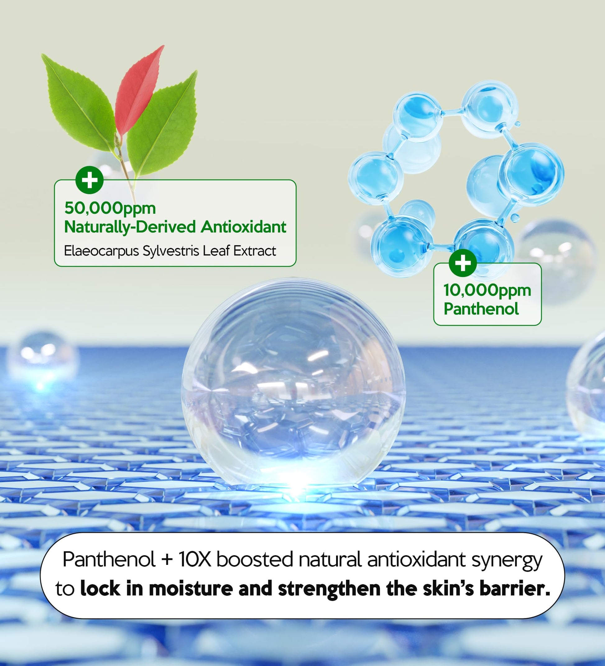 - PANTHENOL FOR LASTING MOISTURE. Infused with 10,000 ppm of Panthenol, this face moisturizer transforms into vitamin B5 upon absorption, helping to replenish and lock in moisture. It keeps the skin soft, nourished, and refreshed all day.