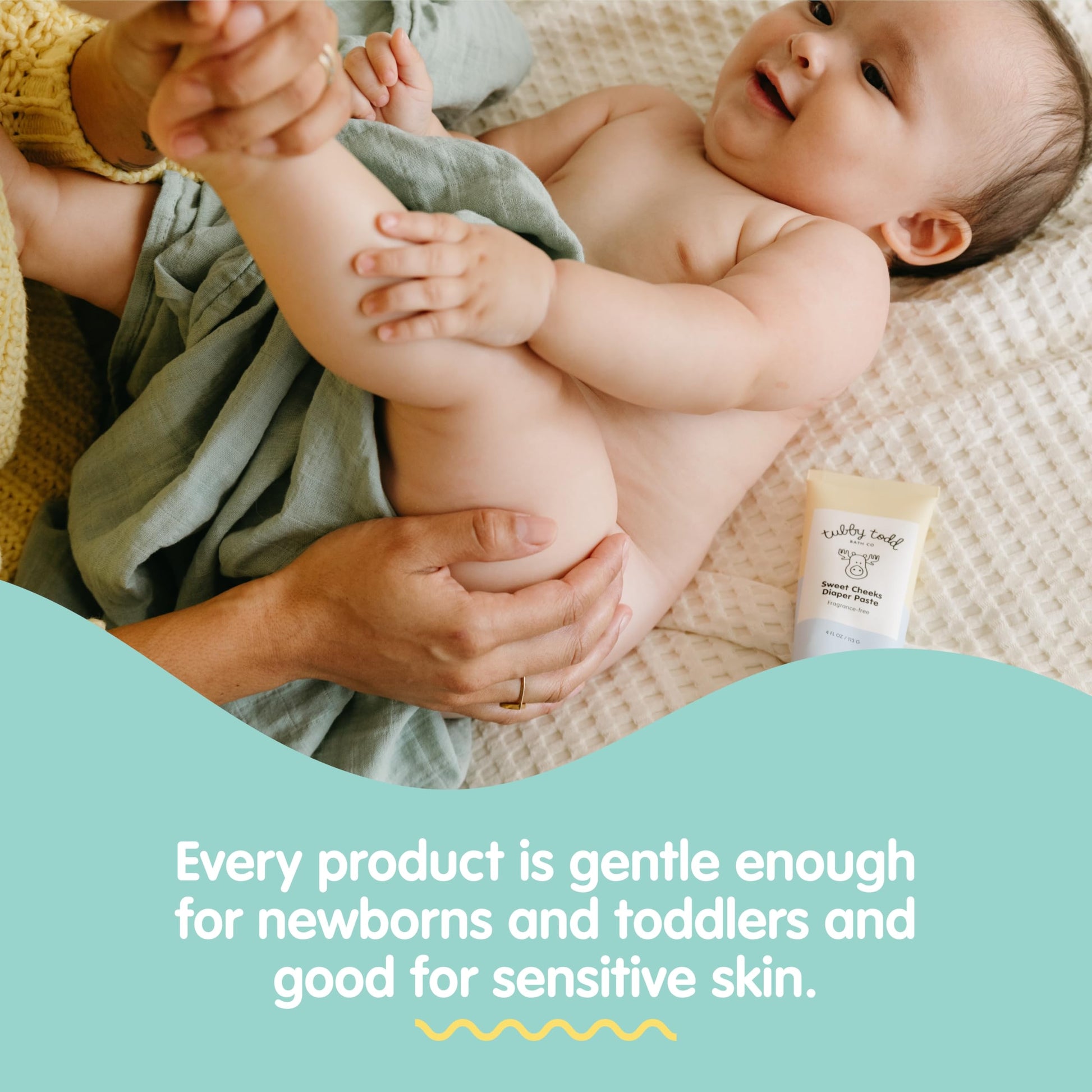 TUBBY TODD Baby Bundle Newborn Skin Care Set - Hypoallergenic Hair + Body Wash, All Over Ointment with Colloidal Oatmeal, Sweet Cheeks Diaper Paste - Fragrance Free, Standard Size
