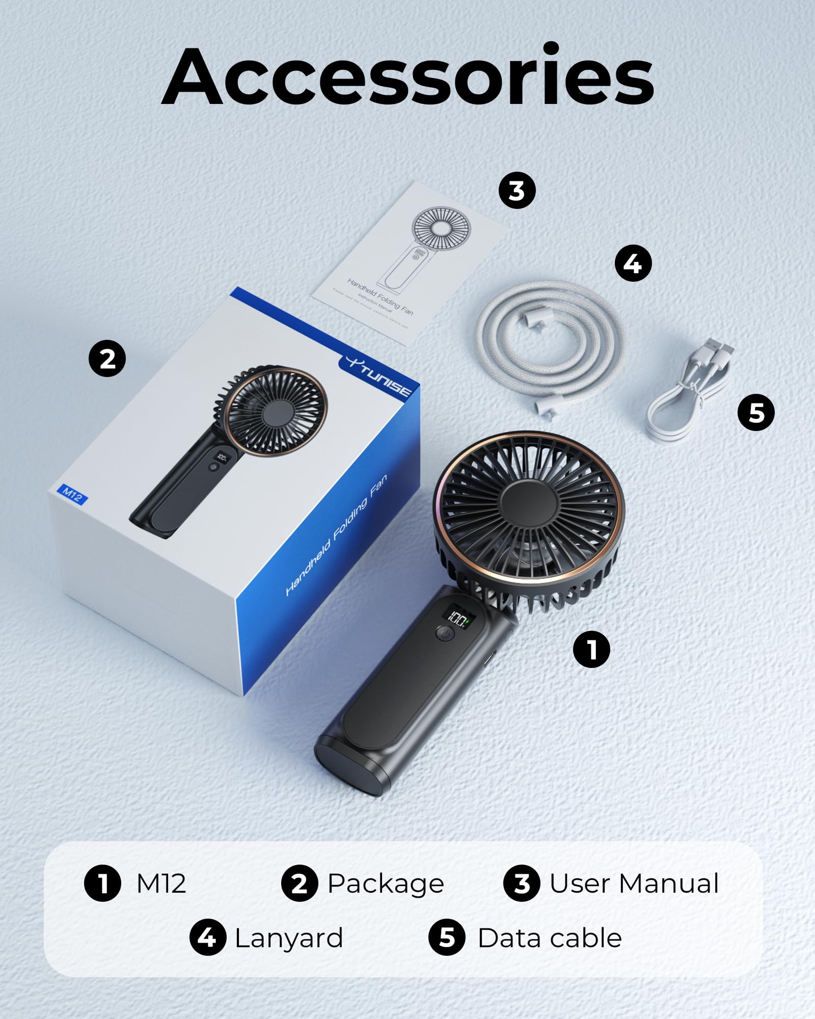 TUNISE Portable Handheld Fan, 4000mAh, 180 Adjustable, 6 Speed Wind, Display Electricity in Real Time, USB Rechargeable Foldable Personal Fan