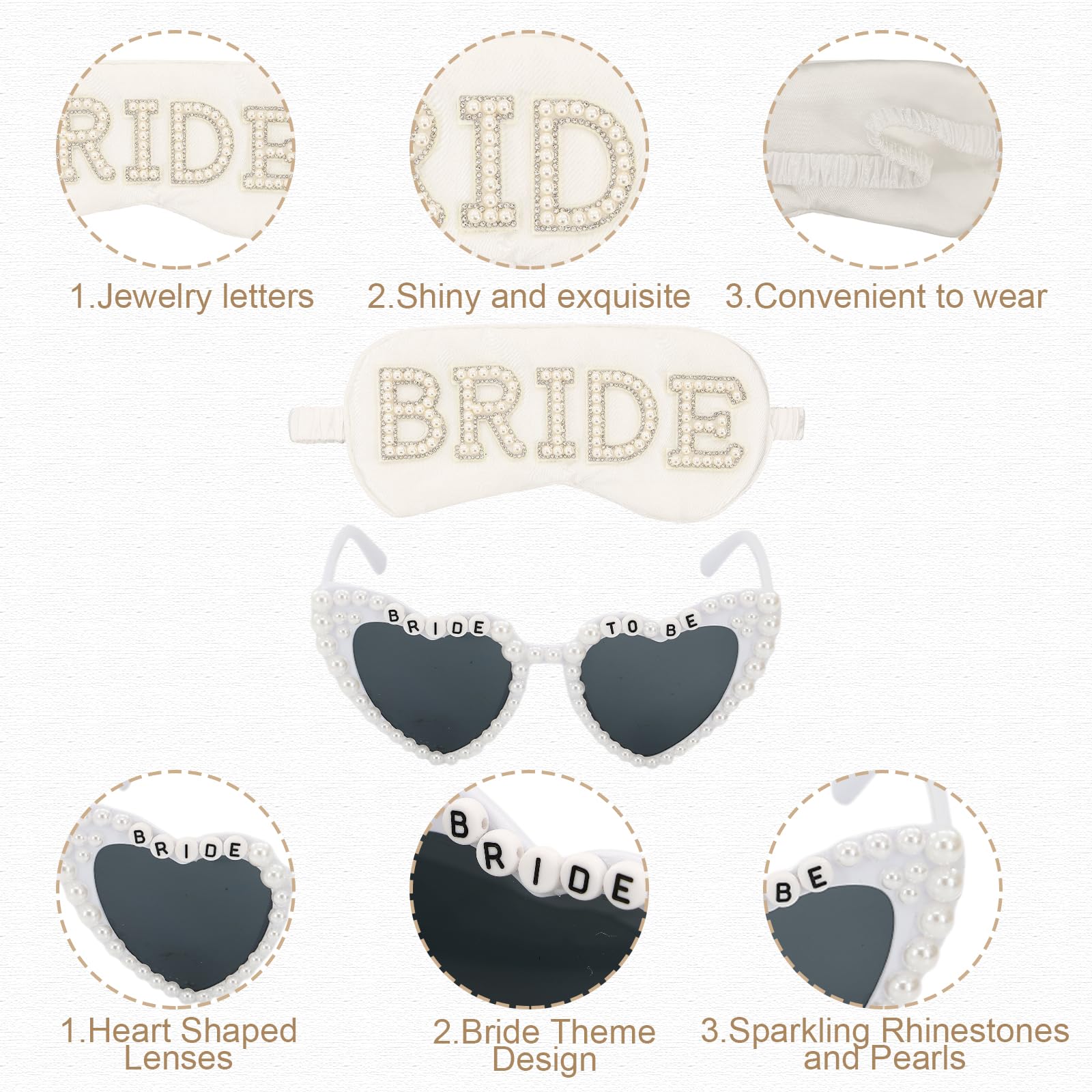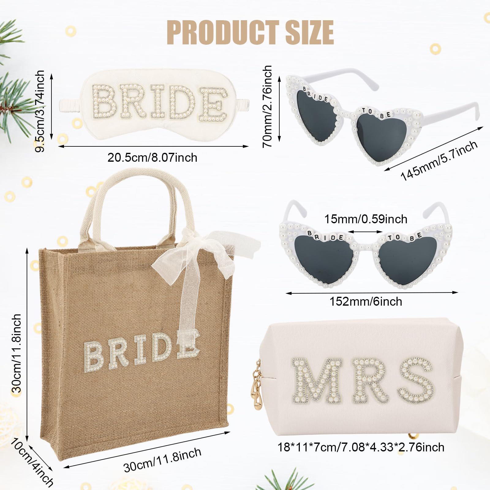 - This bride gift set includes a chic bride tote bag, a stylish mrs bag, a sparkling bride sunglasses, and a cozy bride eye mask. Ideal as bridal shower gifts or bachelorette gifts for bride, it offers a heartfelt way to honor the special bride during celebrations.