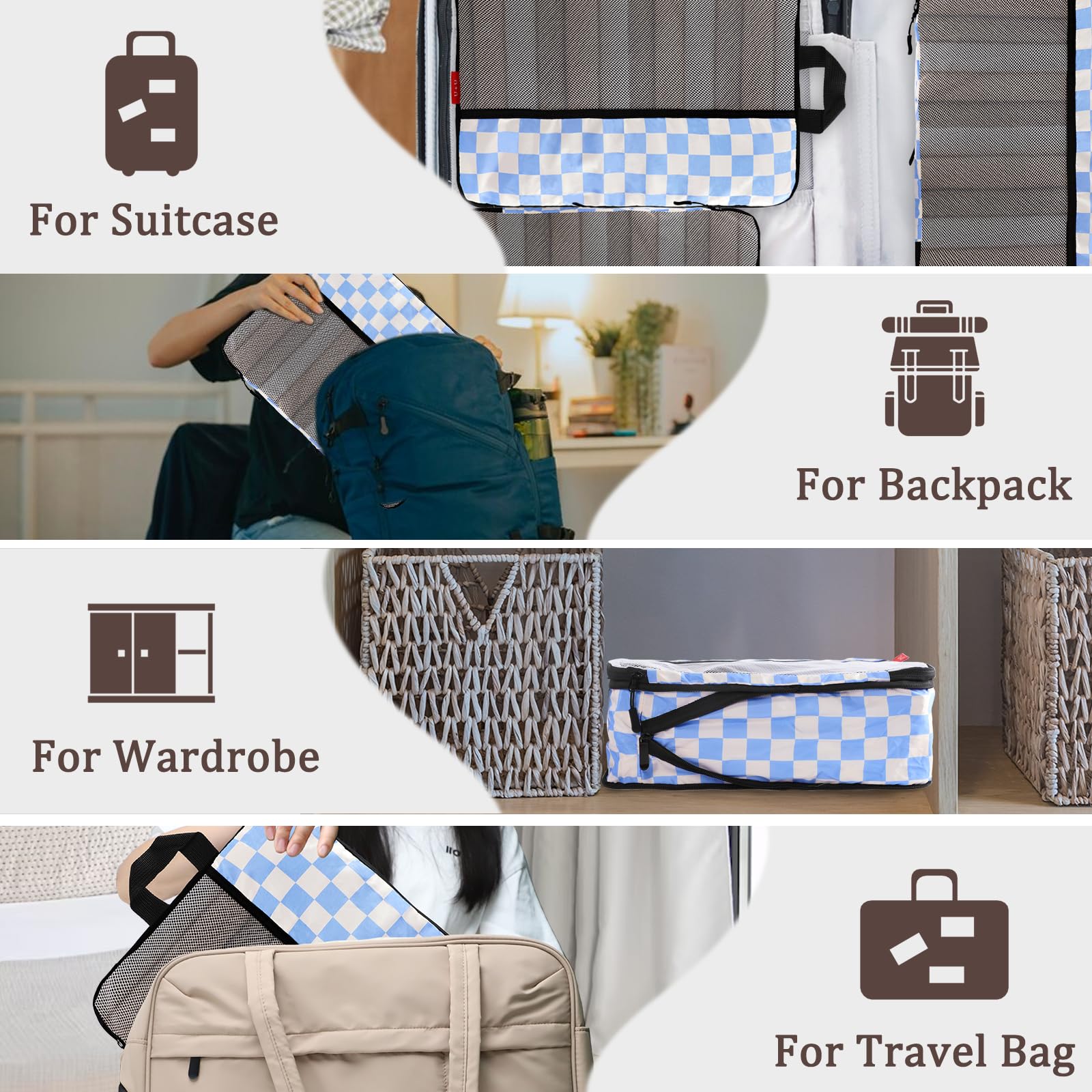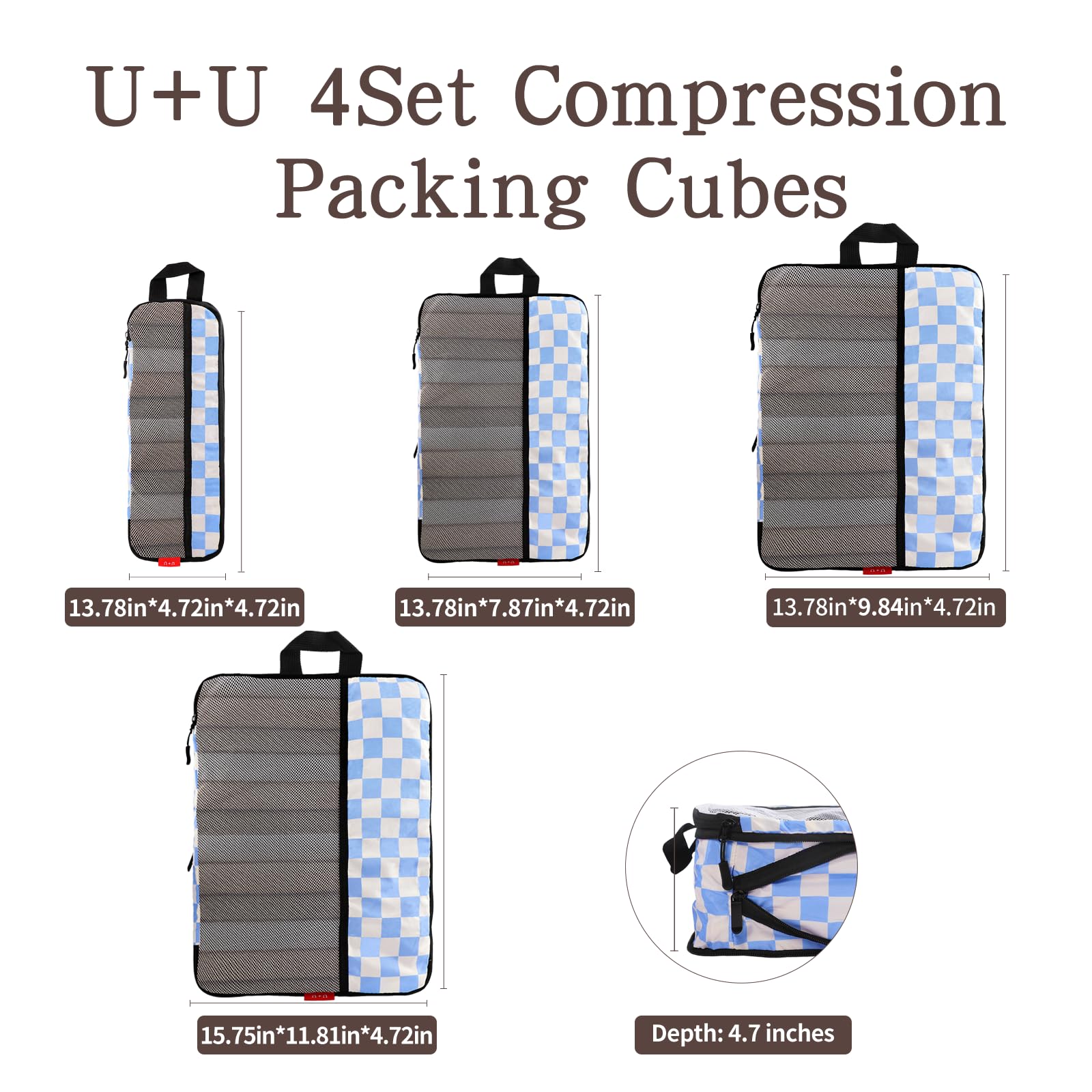 U+U 4 Set Compression Packing Cubes - Ultralight Travel Organizers, Space-Saving Suitcase Organizer, Expandable Packing Cubes for Travel, Business Trip and Family Vacation (Blue Checkered)