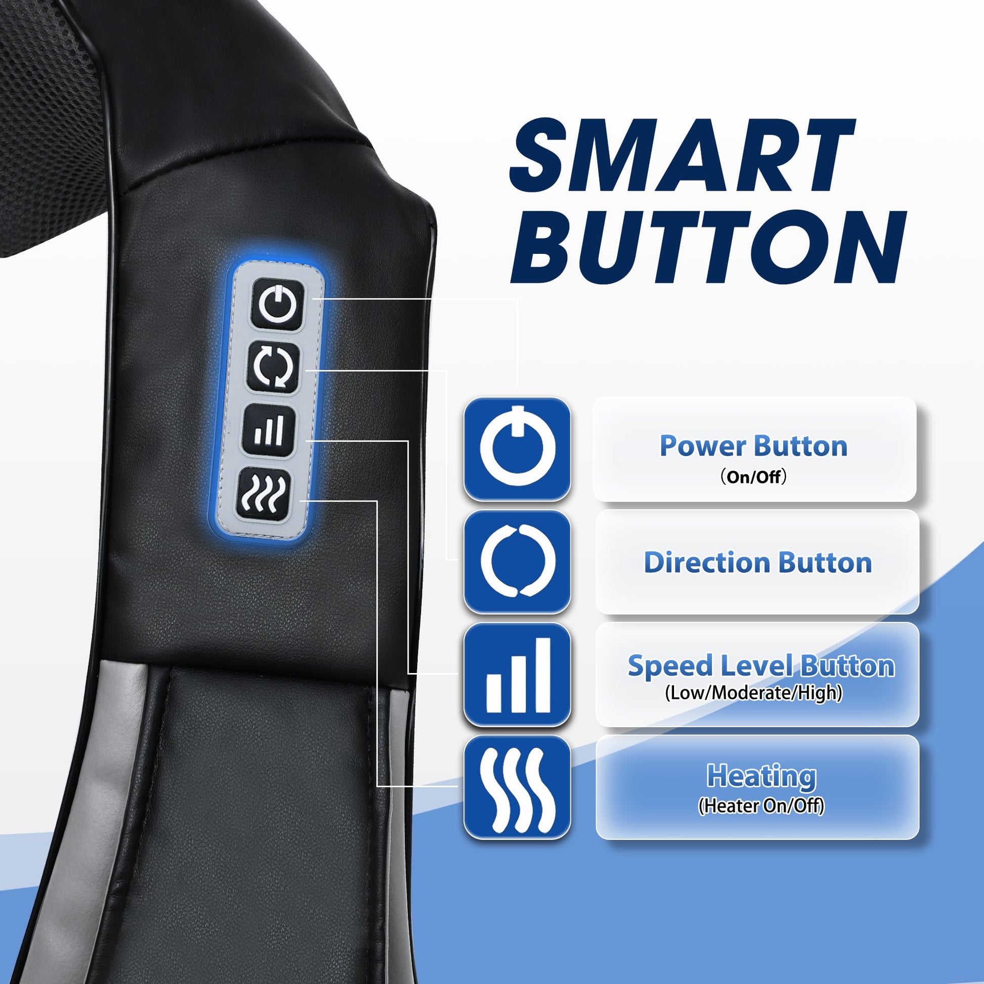 - Three Adjustable Speed Control: With three adjustable speeds (slow, medium and fast), you can adjust the speed to suit your needs and you can also adjust the direction.The shoulder massage will automatically turn off for 15 minutes and will automatically change direction every minute, so that you can enjoy a pleasant 15-minute all-around massage relaxation experience even when you fall asleep.