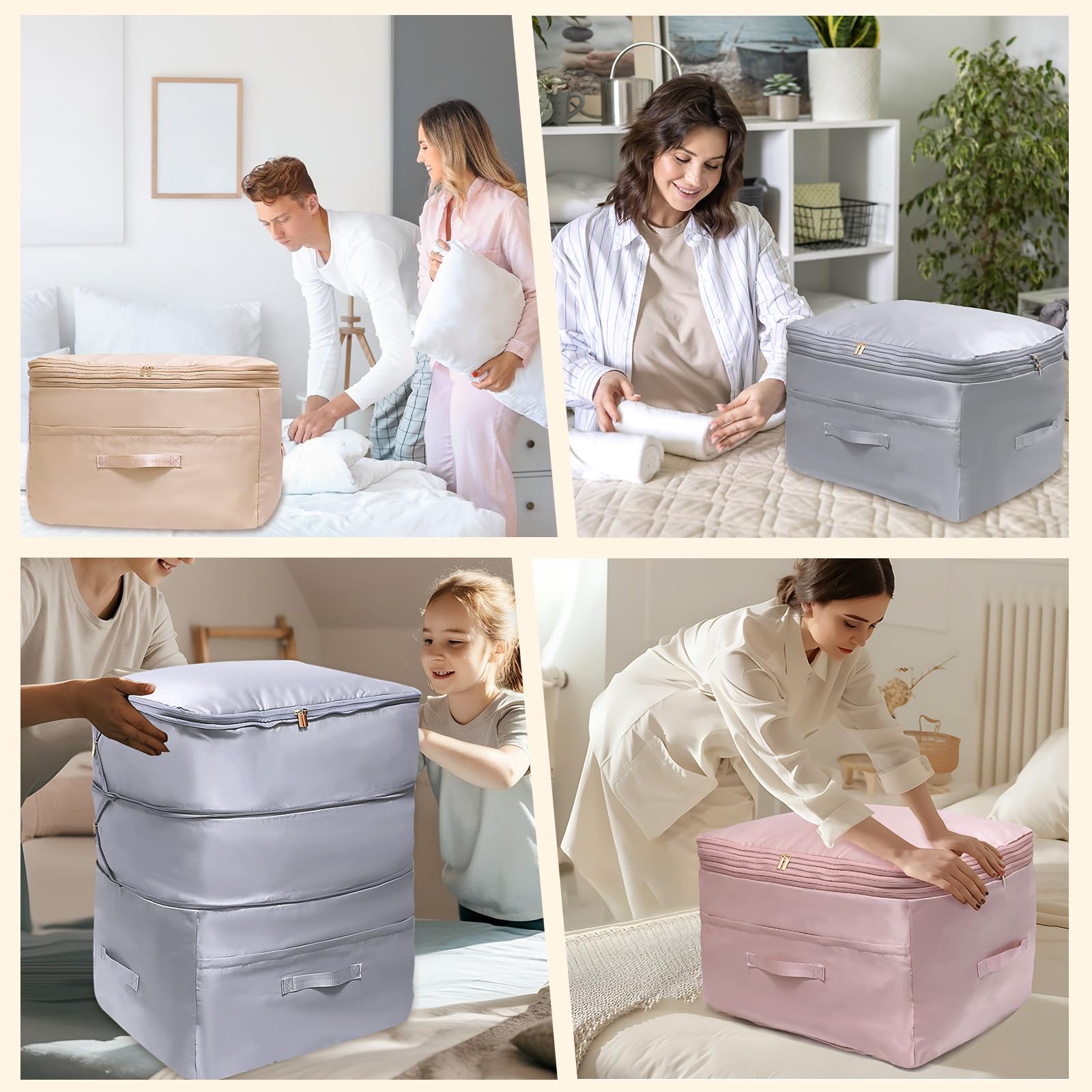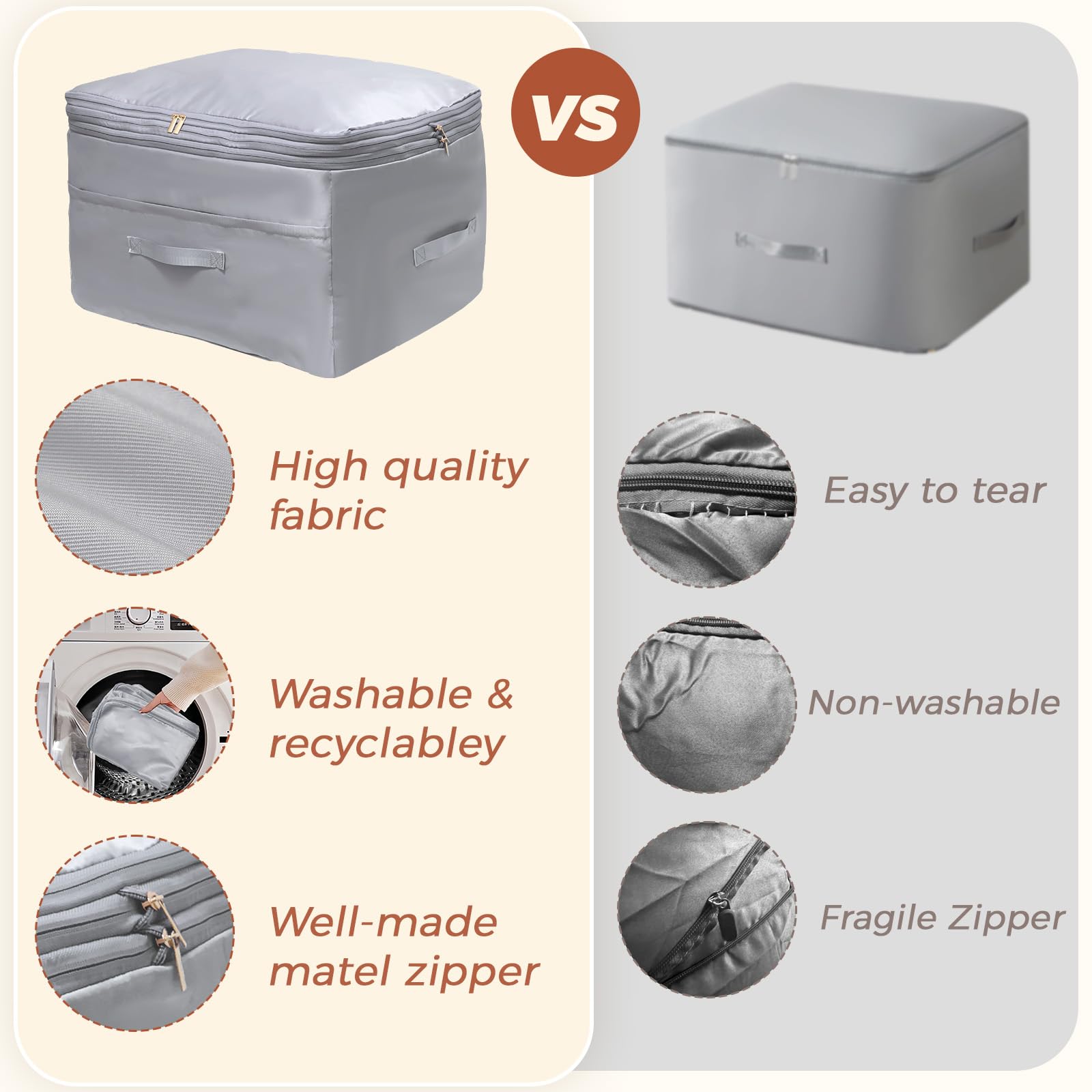 - 【FOLDABLE & WASHABLE】 Designed without a frame so it folds flat when not in use and stacks neatly when filled. Easy to clean with hand or machine wash, providing a long-lasting storage solution for bedding and linens. Tip: Compressing requires some effort. Ensure the contents are spread evenly to distribute the weight. For large quilts above two, we recommend having two people for the task