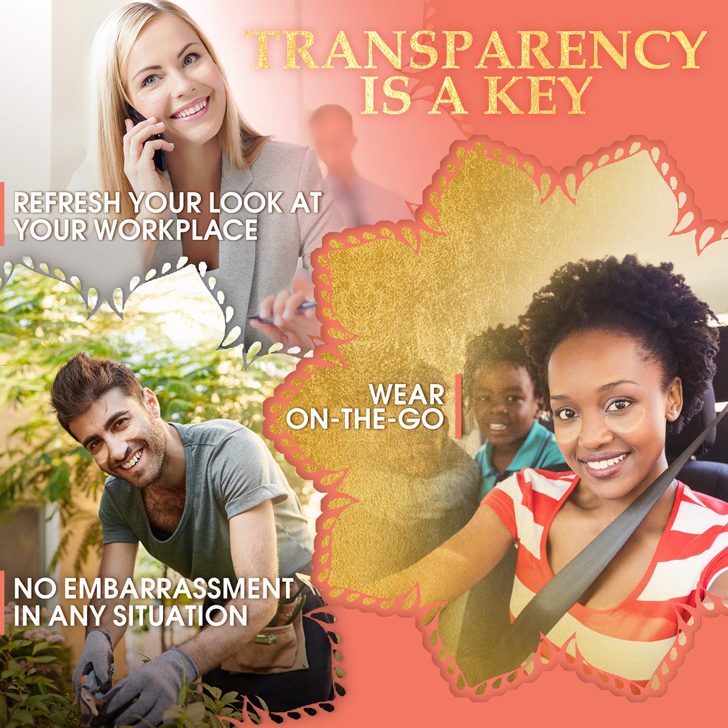 ✔ See-through and non-slip under eye pads for dark circles CAN BE USED ANYWHERE without having to lie down for 20 minutes - saves precious time while also offering flexibility to use in public spaces without attracting unwanted attention.