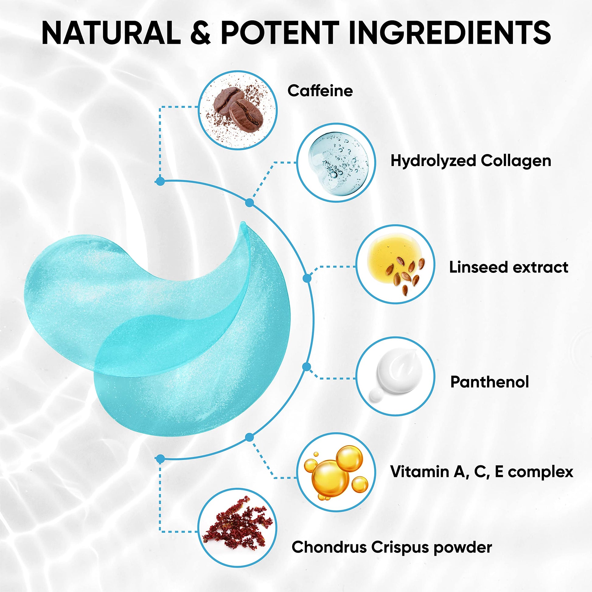 - Natural Formula: eye wrinkle patches contain collagen that supports skin firmness & assists with imperfections caused by aging. Caffeine helps energize dull & tired skin leaving it tight & fresh.