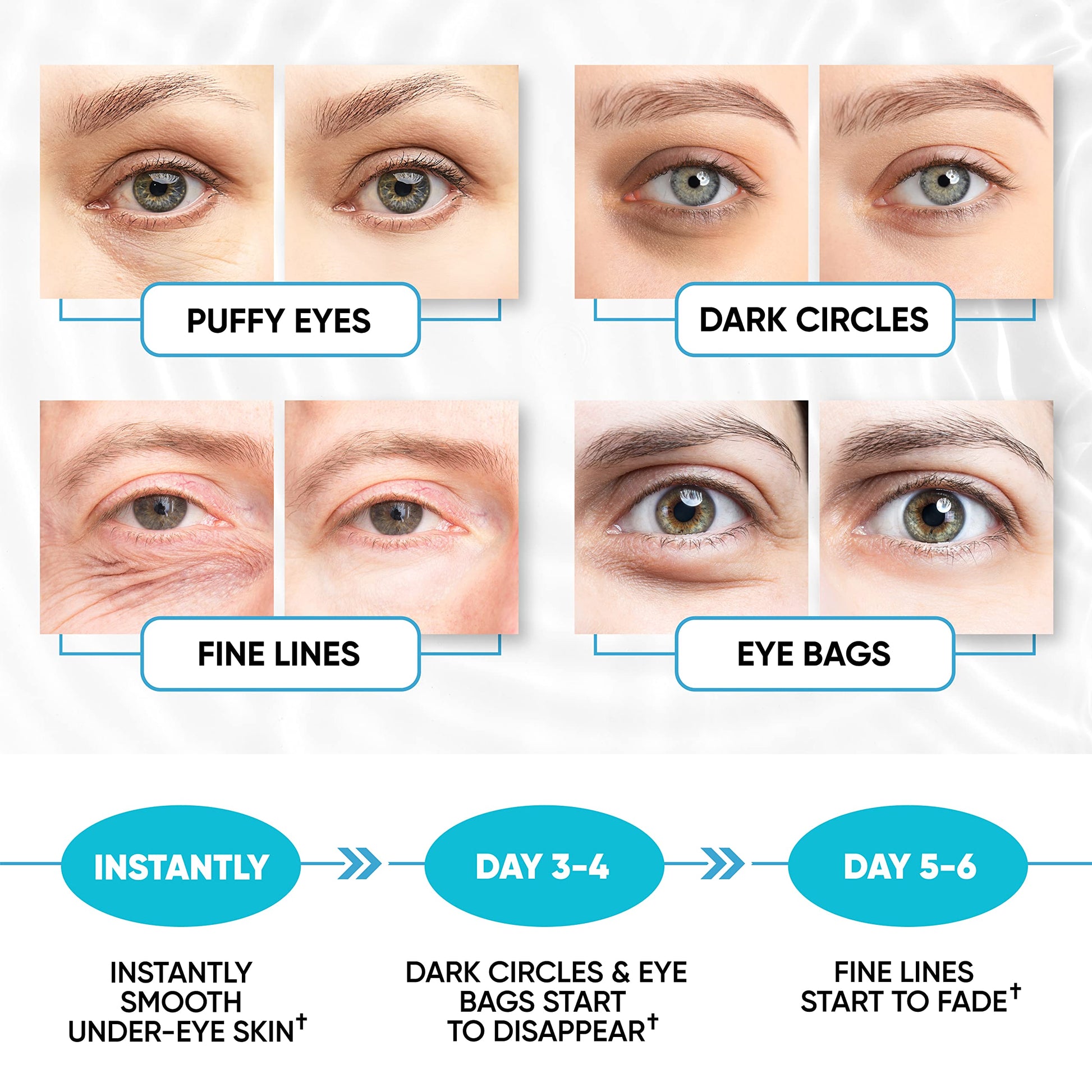 - Soothing Support: under eye pads support healthy eyes without signs of tiredness. Caffeine eye patches help calm & refresh the skin around the eyes while diminishing puffiness, dark circles, under eye bags.