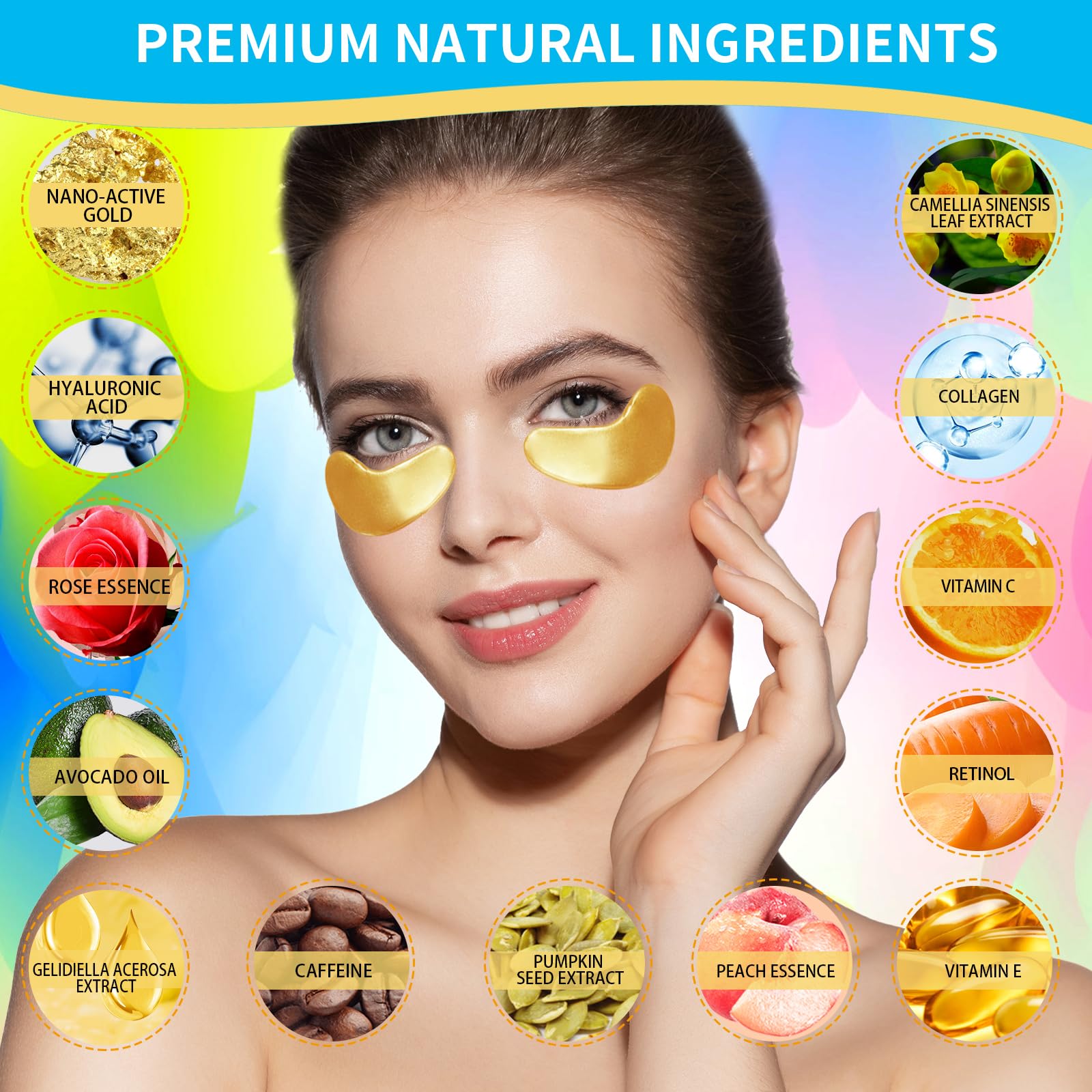 - Revitalize Your Eyes with Gold Infused Luxury: Treat yourself to the opulence of 24K gold eye masks for dark circles and puffiness, hyaluronic acid and peach eye masks, offering a lavish solution for puffy eyes treatment and eye bags treatment for women and men. Our under eye patches and masks are meticulously crafted to address dark circles and puffiness, providing comprehensive skincare that leaves your delicate under eye area looking refreshed and agelessly beautiful.