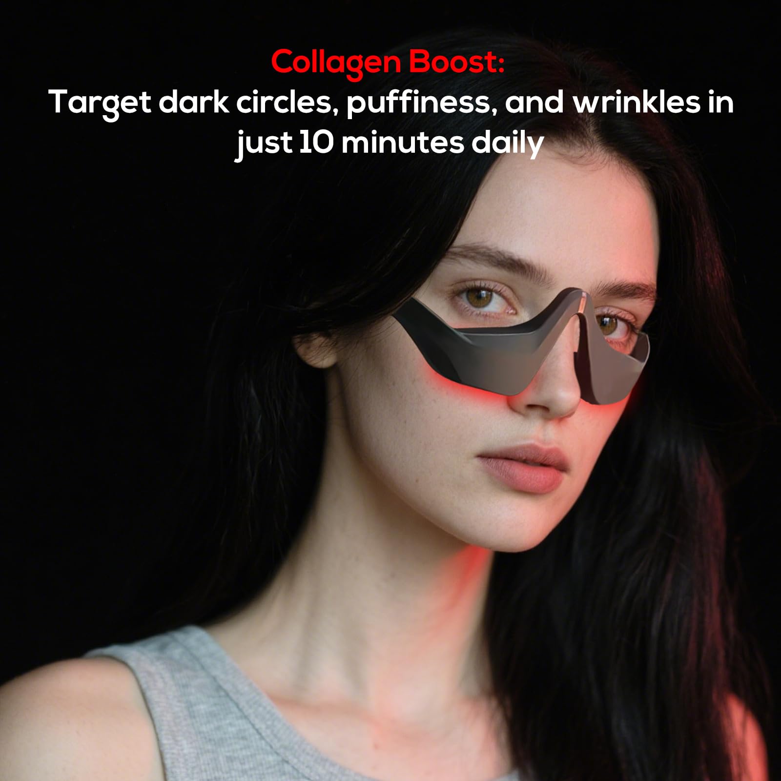 - Under Eyes Red Light Massager Glasses: Gentle and safe for all skin types. Tightens puffy eyes, minimizes stubborn dark circles, brightens tired eye area, and reduces fine lines and wrinkles for a youthful glow.