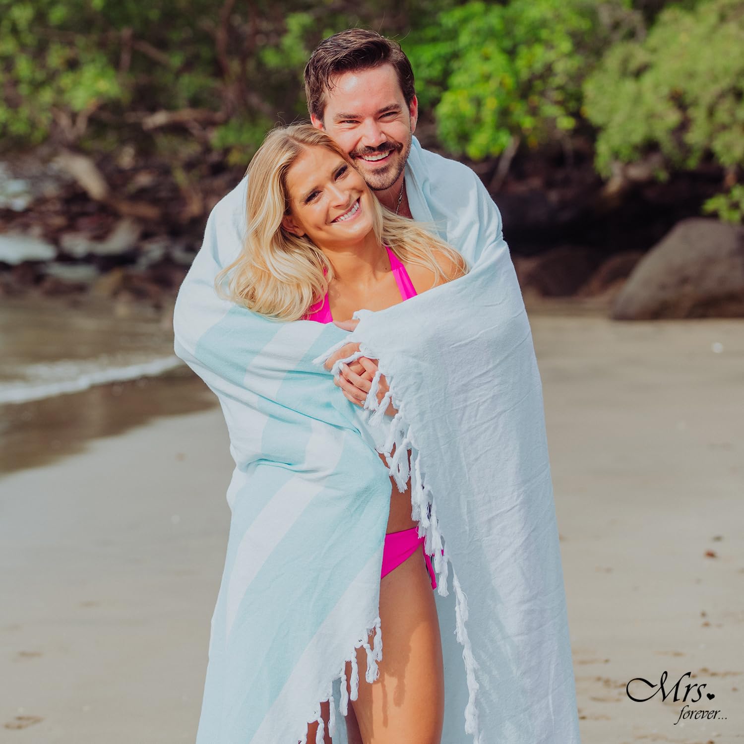 - Everything She Needs to Make a Splash: Our wifey gifts set has it all – an 18" x 18" bride beach bag, a blow up neck pillow with cotton cover, a 66" x 72" Turkish beach blanket, even a handy can cozy