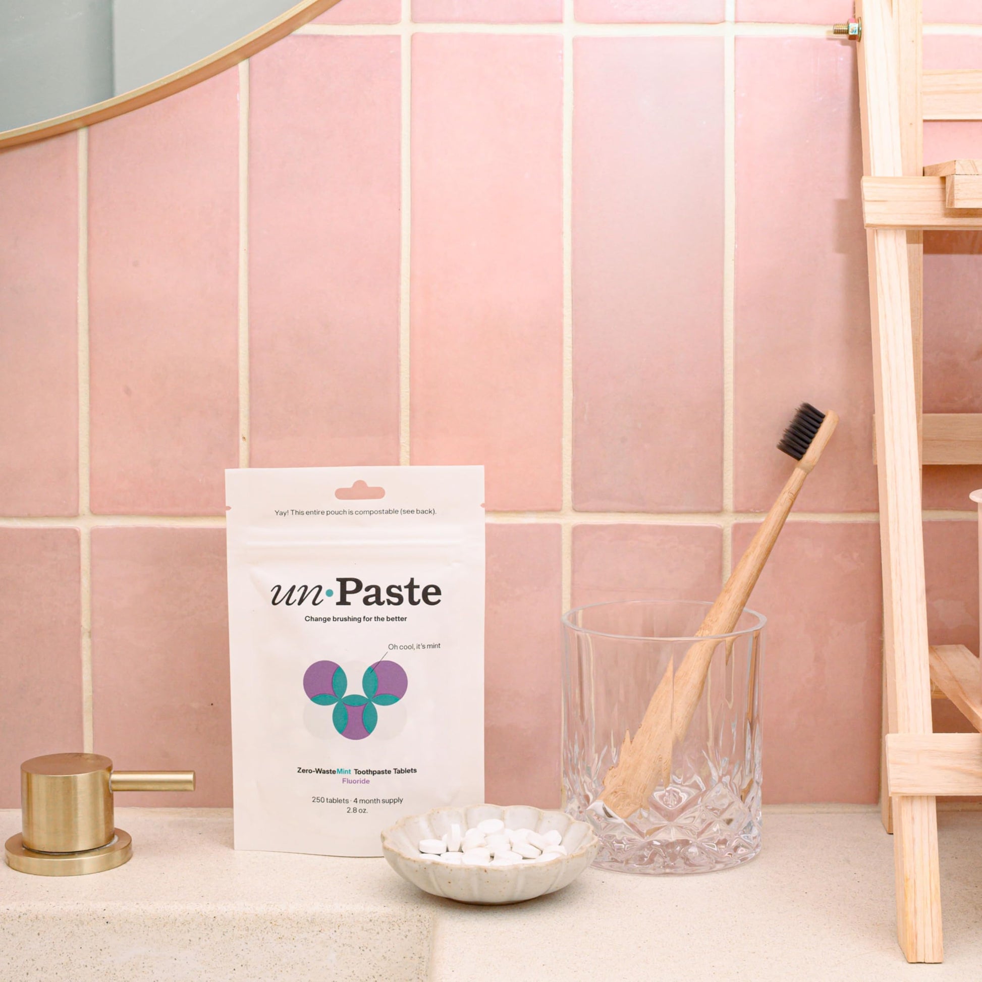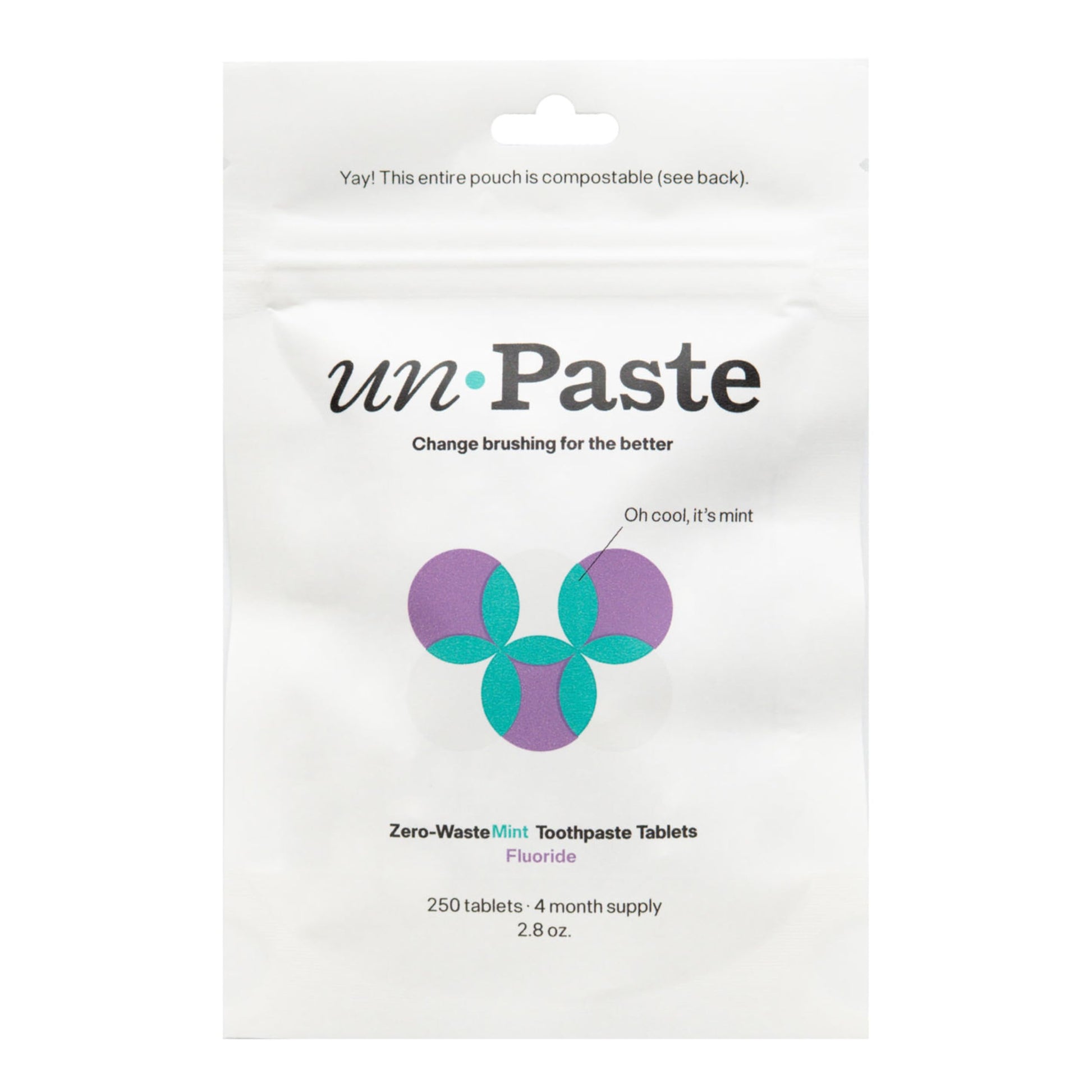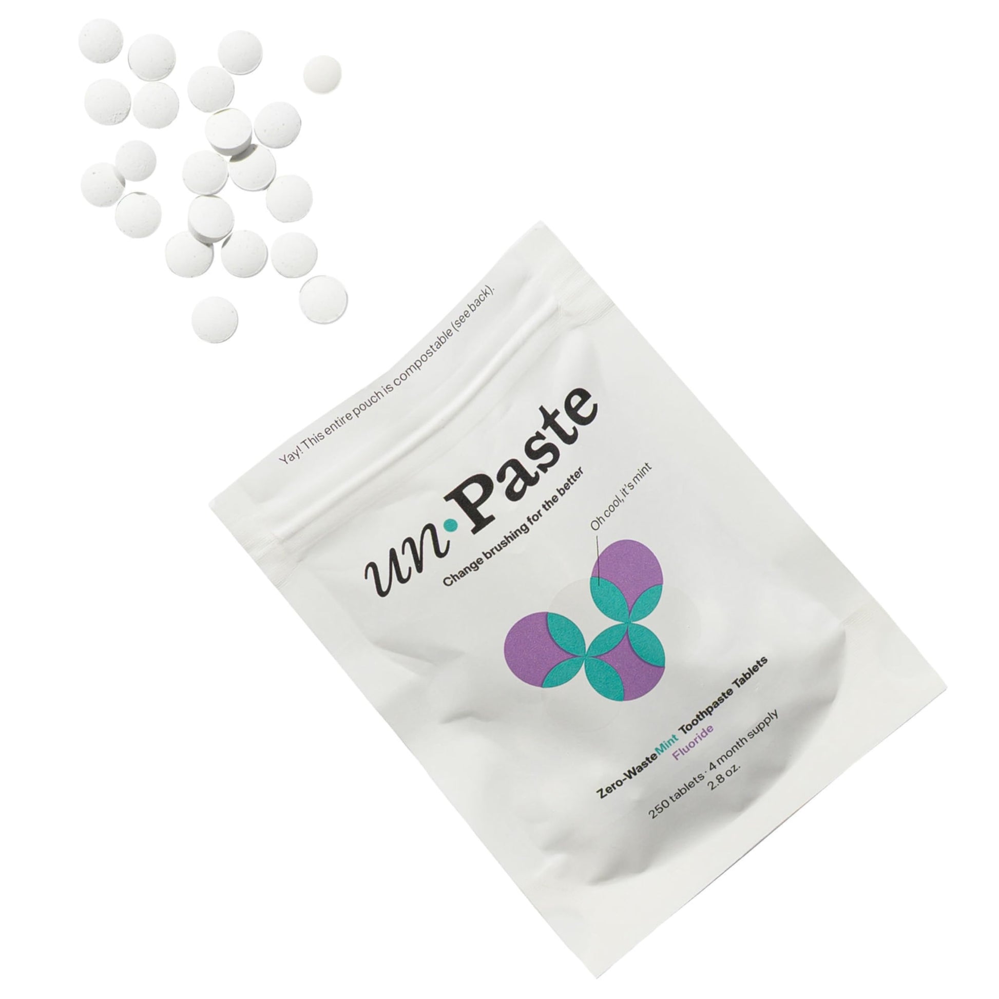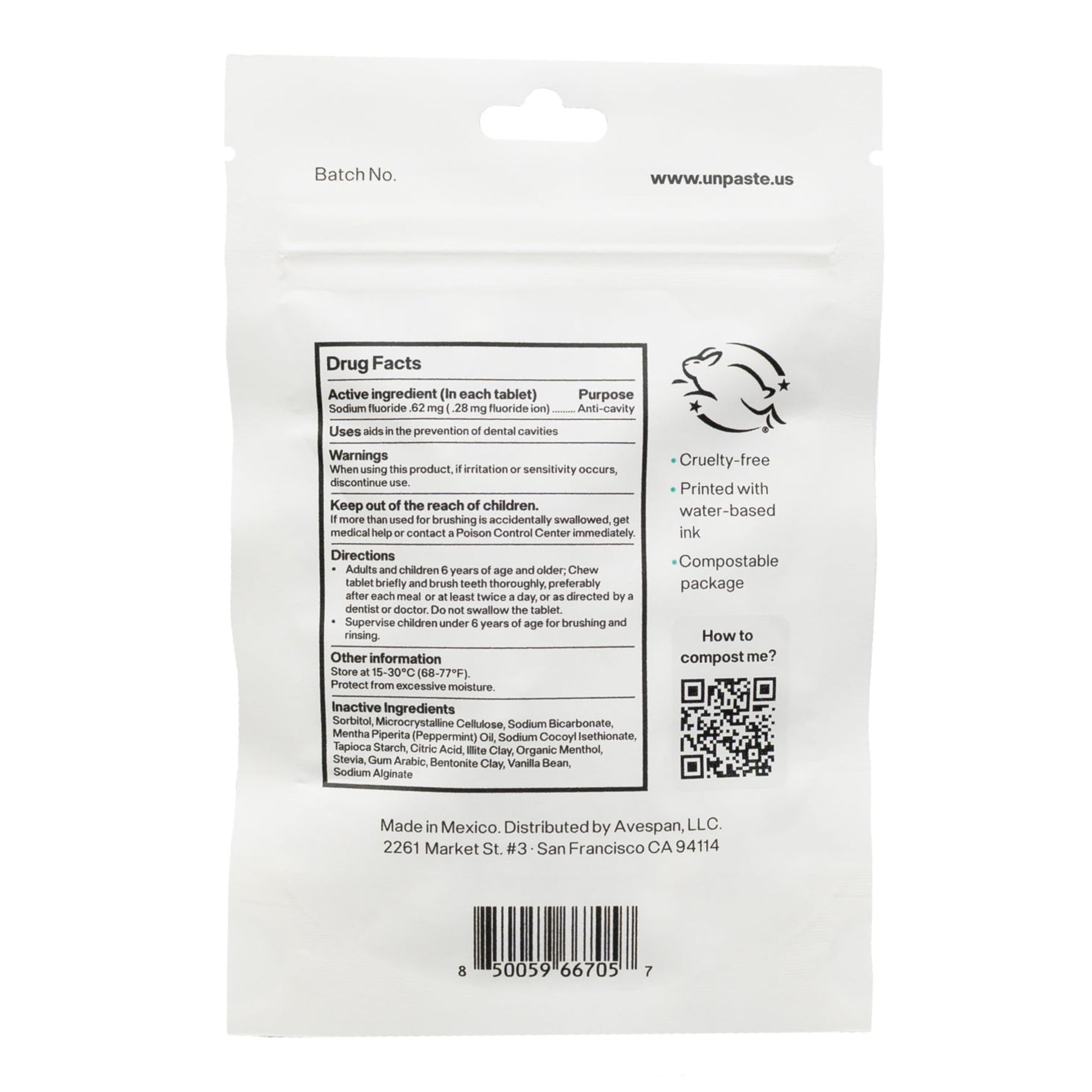 Unpaste Toothpaste Tablets, New Formula, Fluoride Mint, Xylitol Free, Vegan, Plastic Free, Travel-Friendly, Resealable Packet, 250ct, 4 Month Supply