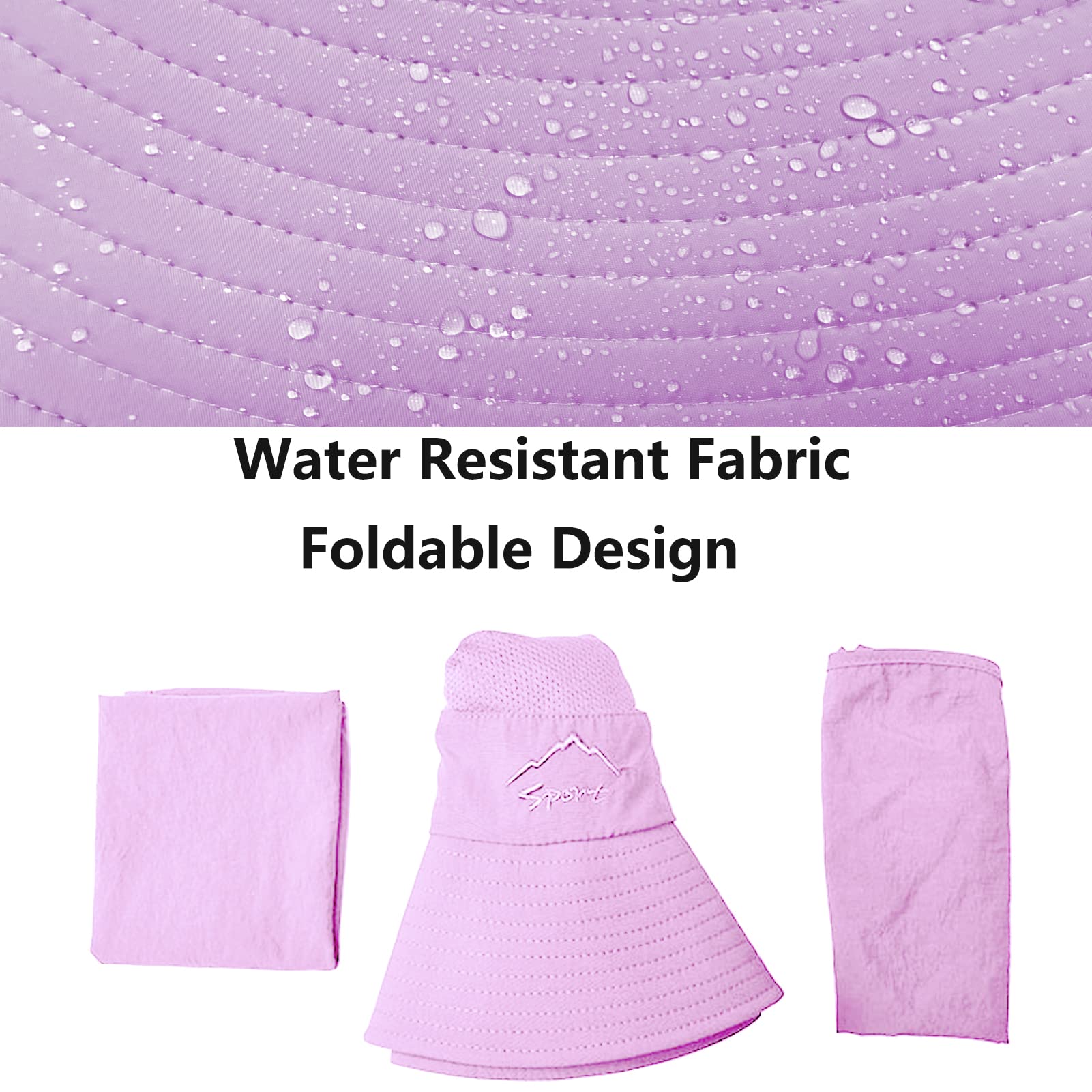 UPF 50+ Sun Fishing Hat for Men Women Wide Brim Hat with Detachable Face Cover & Neck Flap Violet