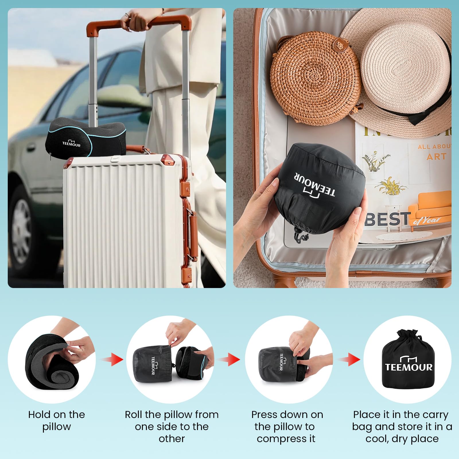 - PORTABLE & CONVENIENT---Designed for easy travel, the Teemour travel neck pillow can be compressed and stored in the included compact carry bag , easily attaching to luggage, backpacks, or tote bags. Lightweight design travel pillows for airplanes can be hassle-free additions to your travel essentials—perfect for international flights, Driving, camping, or daily commutes.