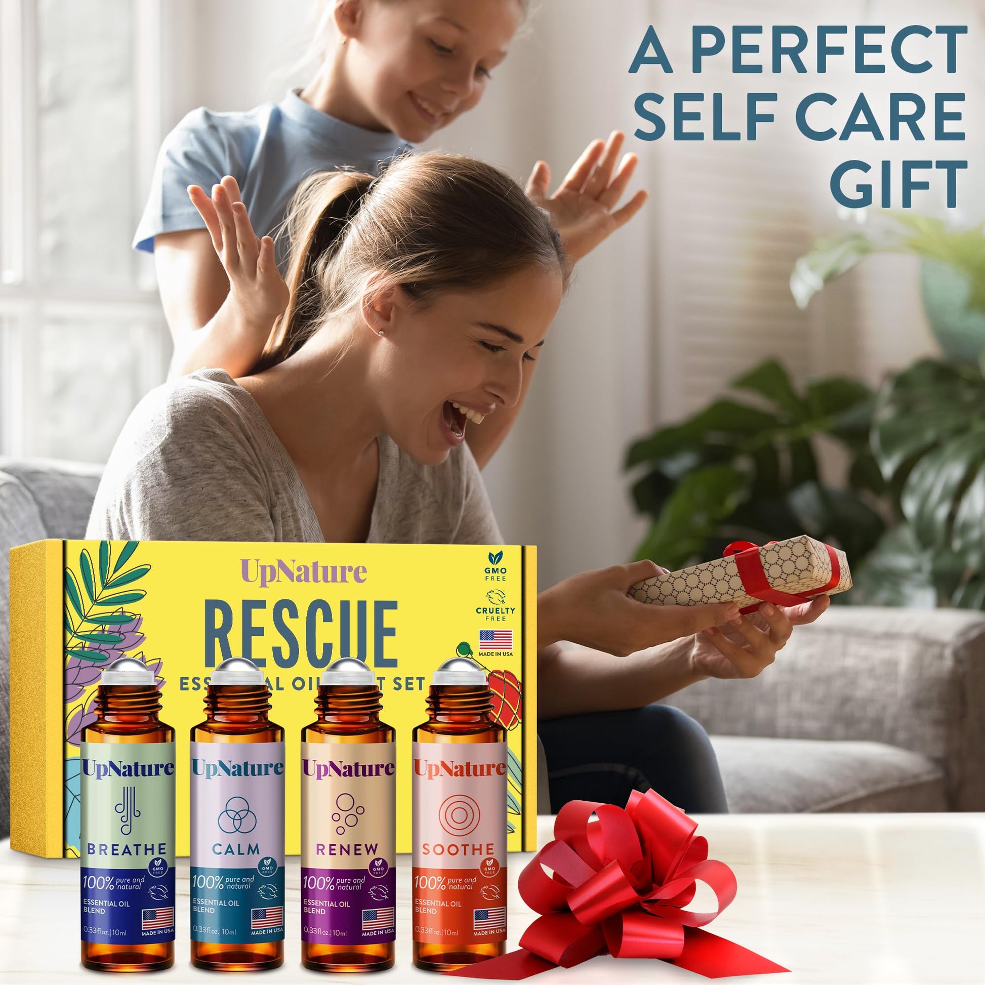 UpNature Essential Oils Roll On Set (Pack of 4) Stress Relief Gift Aromatherapy Oil - Self Care Gifts for Women