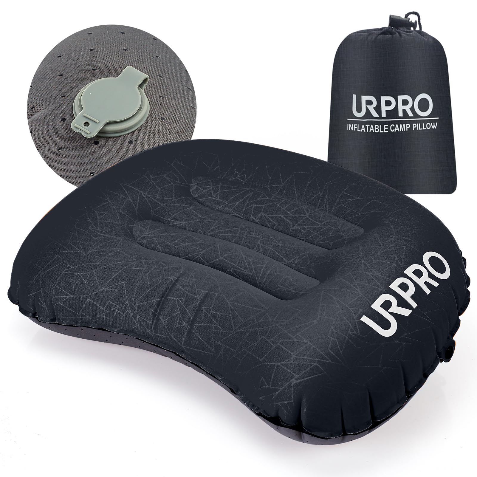URPRO Ultralight Inflatable Camping Travel Pillow - Compressible, Compact, Comfortable, Ergonomic Inflating Pillows for Neck & Lumbar Support Camp, Hiking, Backpacking Black