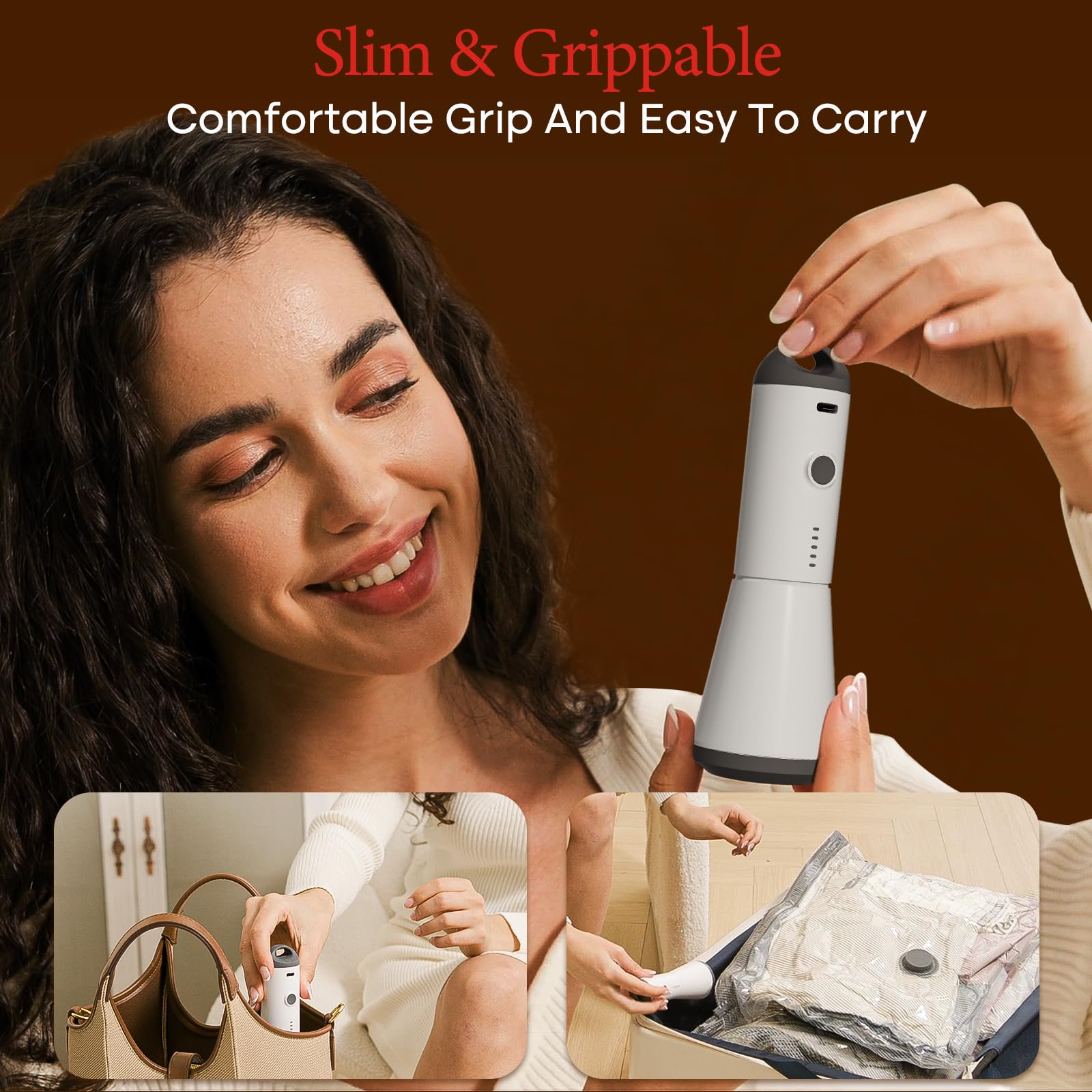 - Rechargeable & Cordless for Travel – Powered by a 1500mAh battery, this pump compresses up to 90 bags per charge. USB charging via laptop or power bank ensures global compatibility