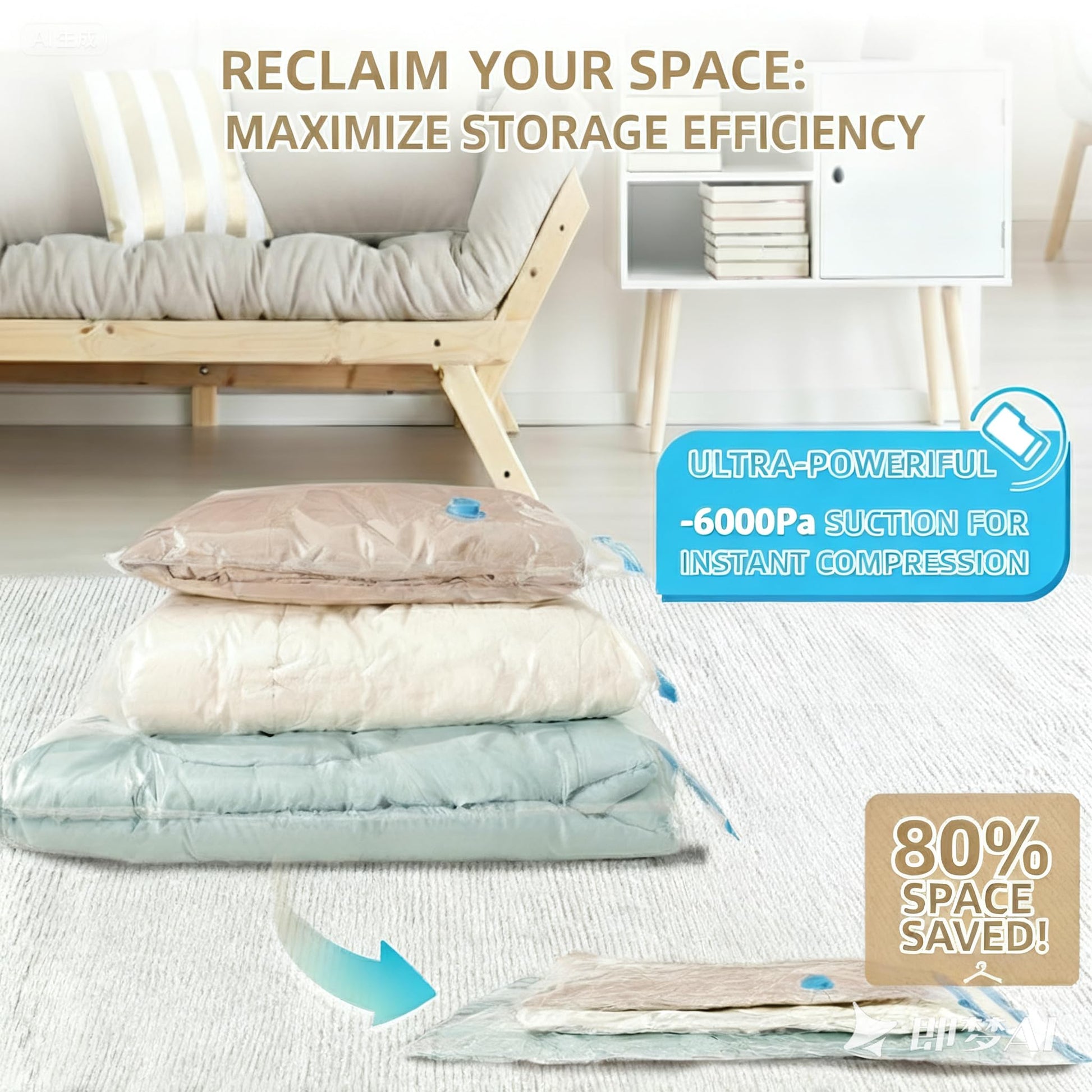 - 【Maximize Your Luggage Space】: This travel compression bag set includes 9 vacuum storage bags in 3 versatile sizes ((15.8×19.7in, 15.8×23.6in, 31.5×23.6in)). Our jumbo-sized Large bags are specially designed for bulky winter coats, comforters, and blankets, helping you reduce luggage volume by up to 80%. Pack more efficiently and effortlessly, giving you extra room for souvenirs.